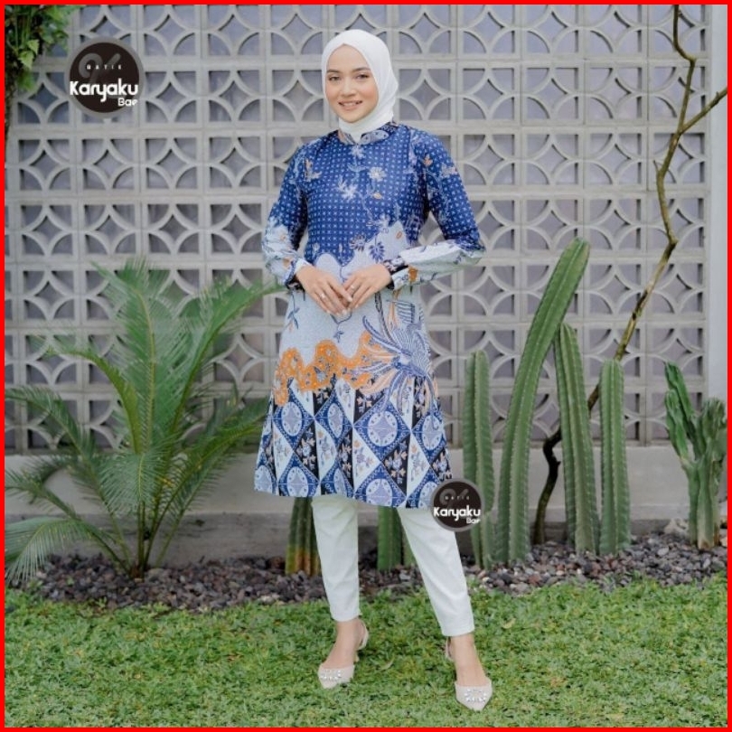 Tunik Batik Wanita Modern M L Xl Xxl Jumbo Atasan Batik Tunik Kartika