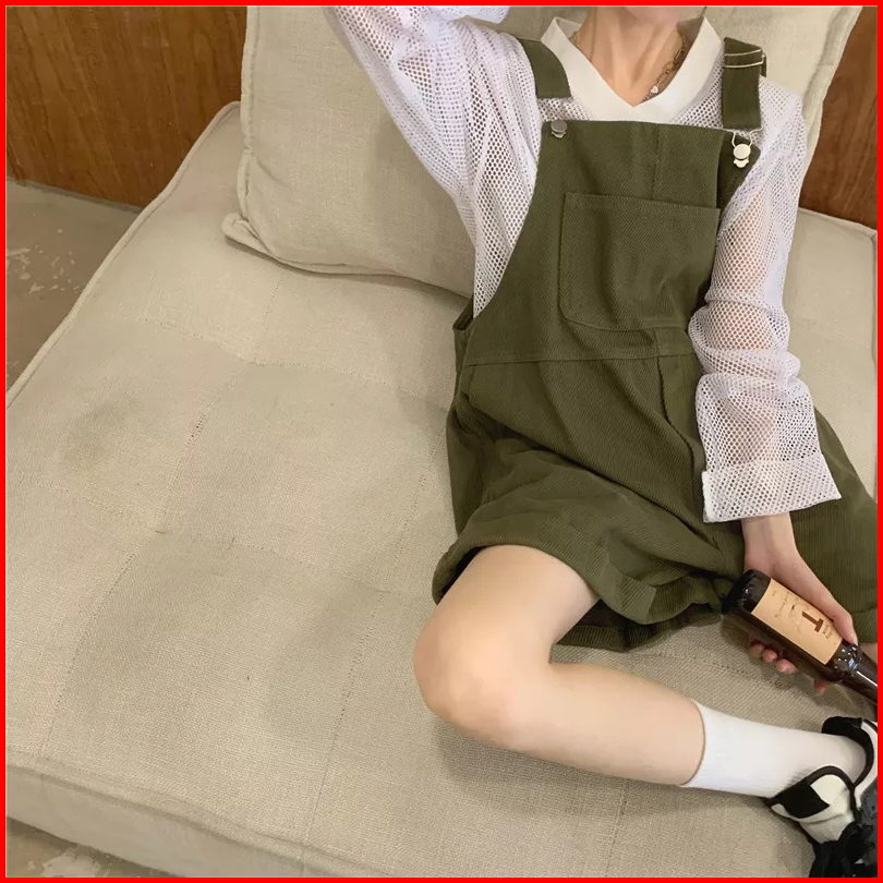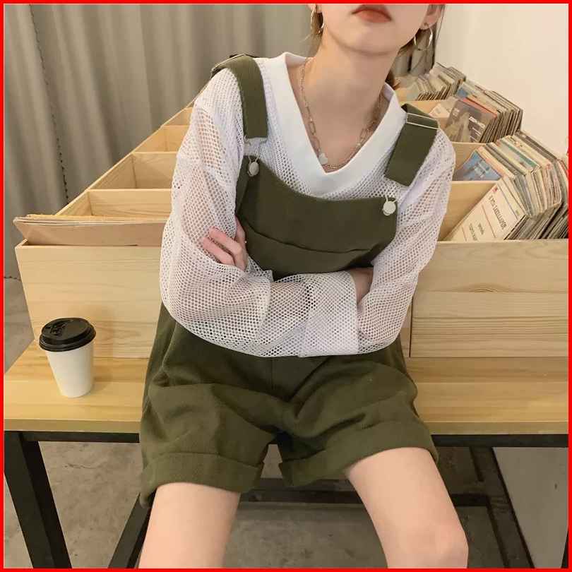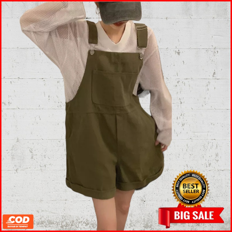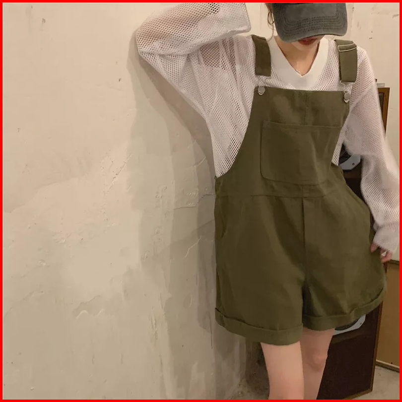 Jumpsuit Romper Demim Pria Wanita Gaya Preppy Korea Overall Pendek Longgar
