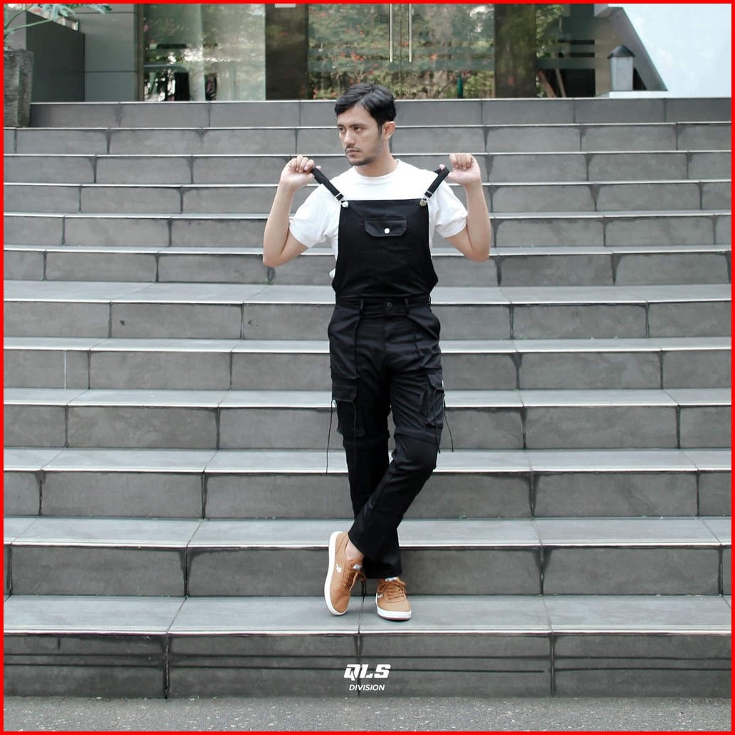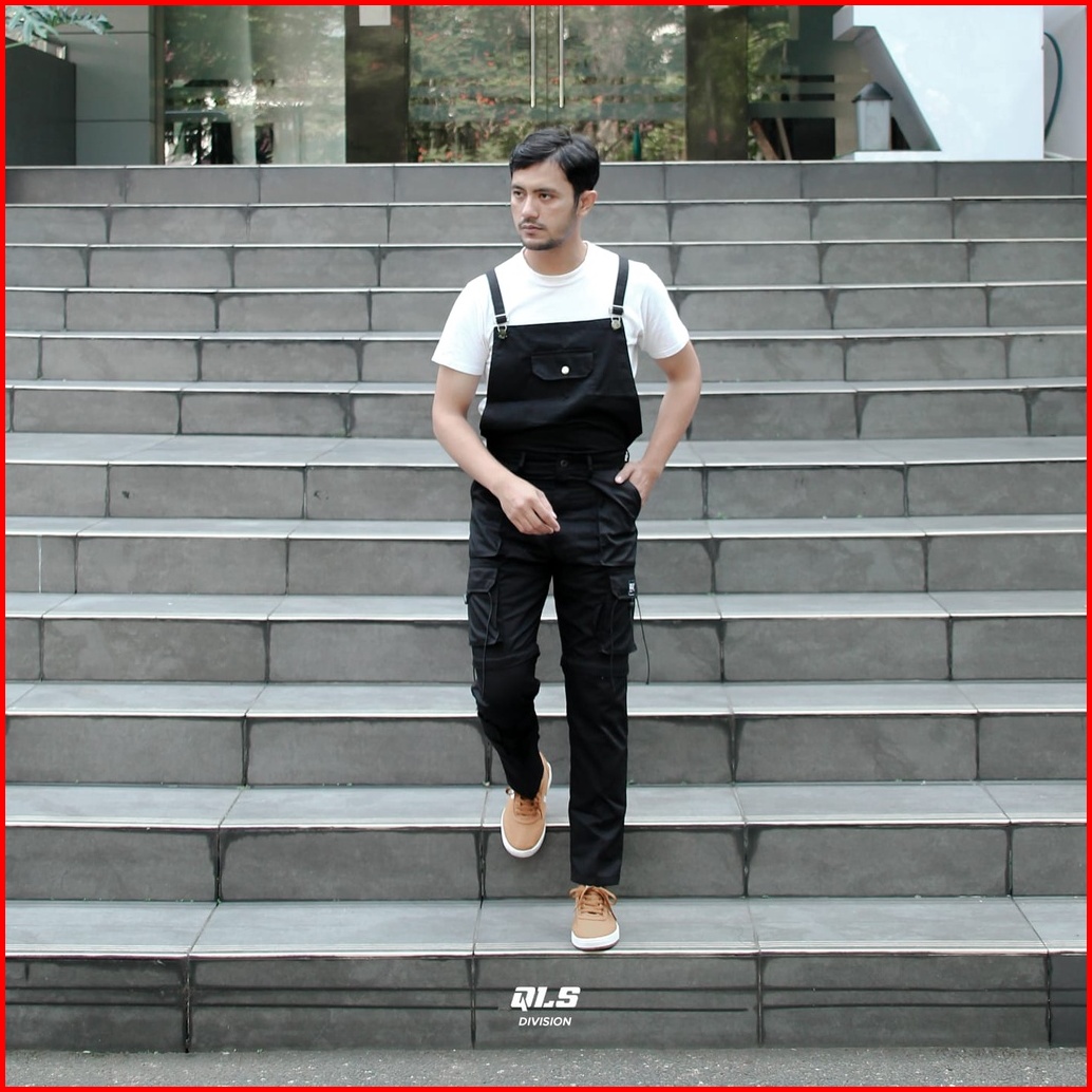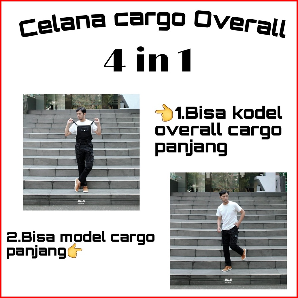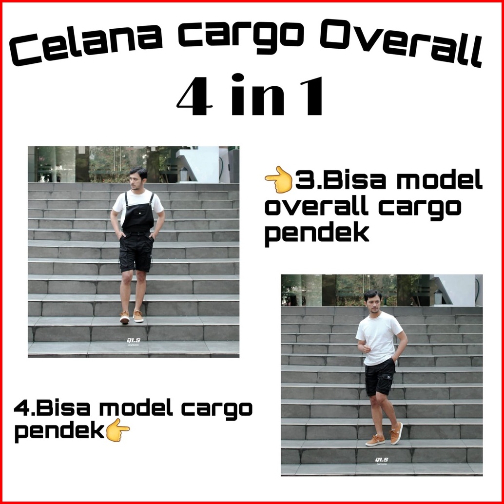 Celana Cargo Overall Pria 4 In 1 Panjang Pendek Hitam