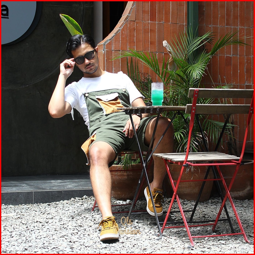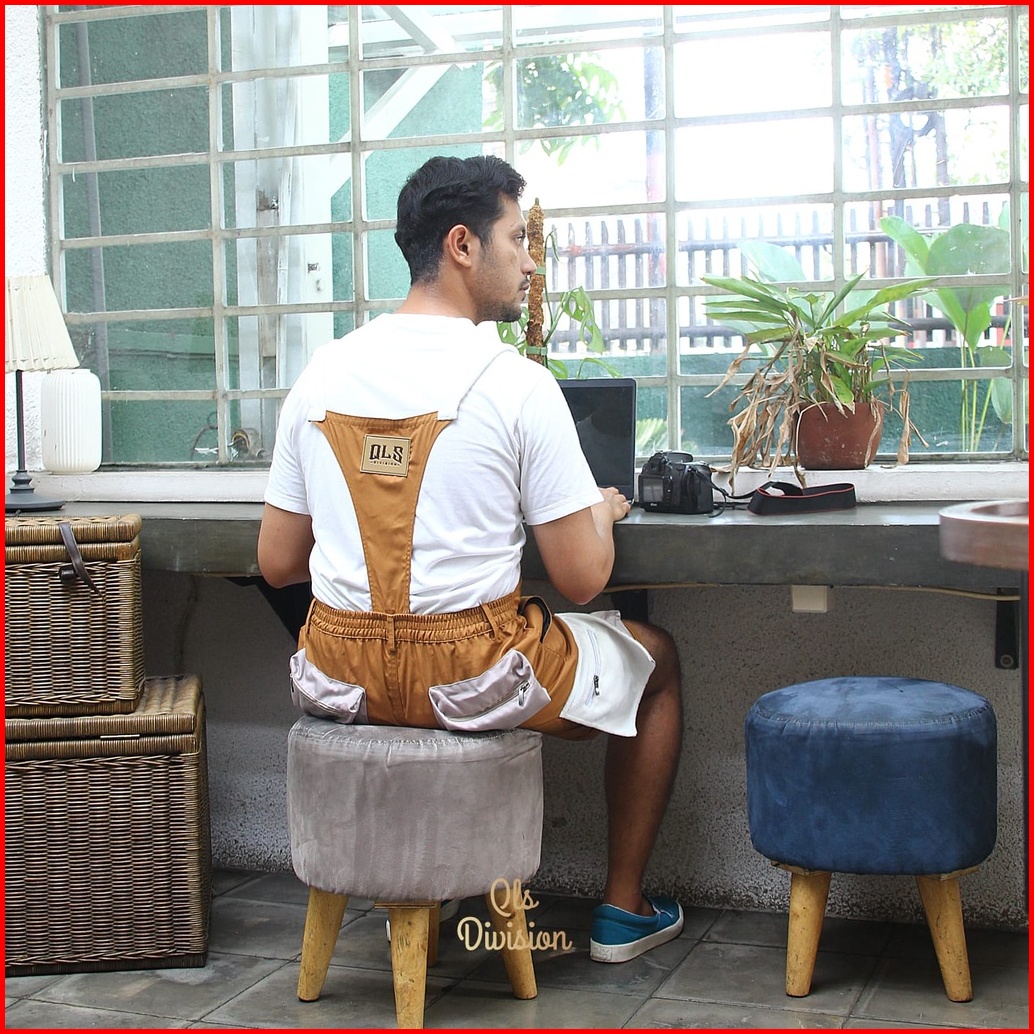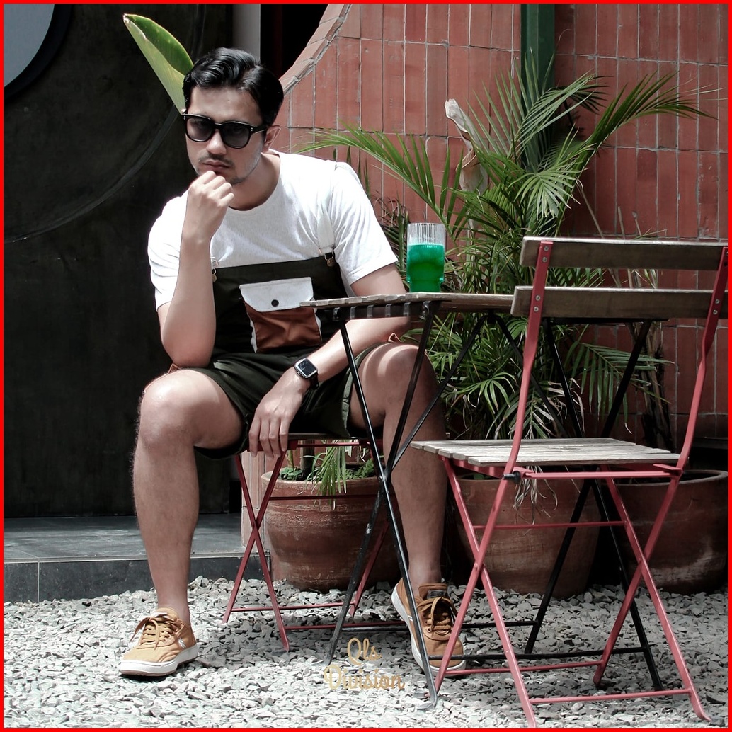 Short Pants Overall Fluffy Cloth Celana Overall Pendek Combinasi Bulu Overall Pendek Pria