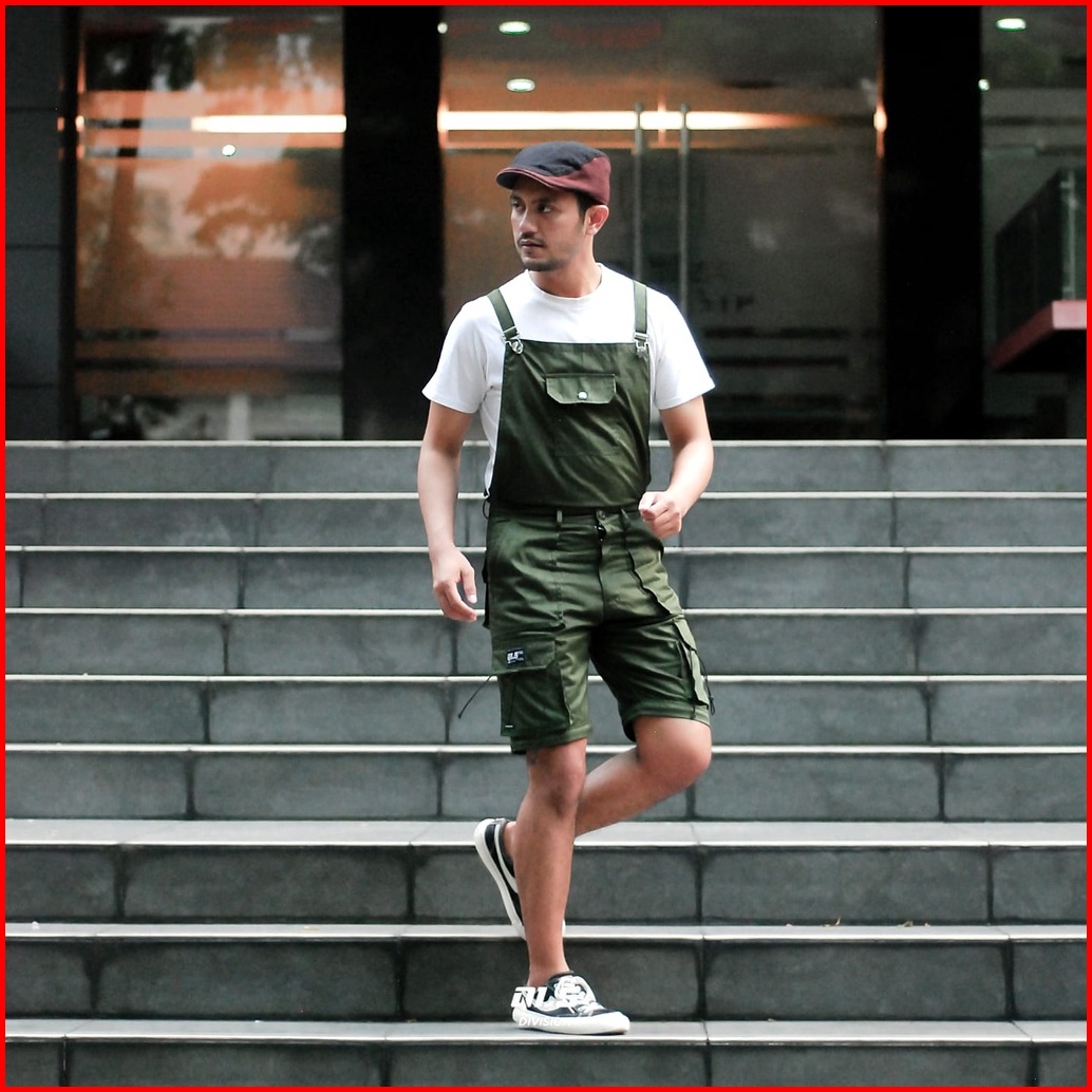 Celana Cargo Overall Pria 4 In 1 Panjang Pendek Hijau Army