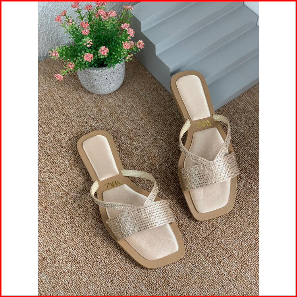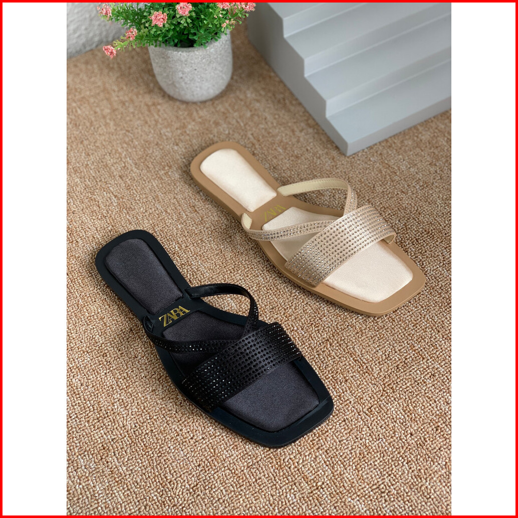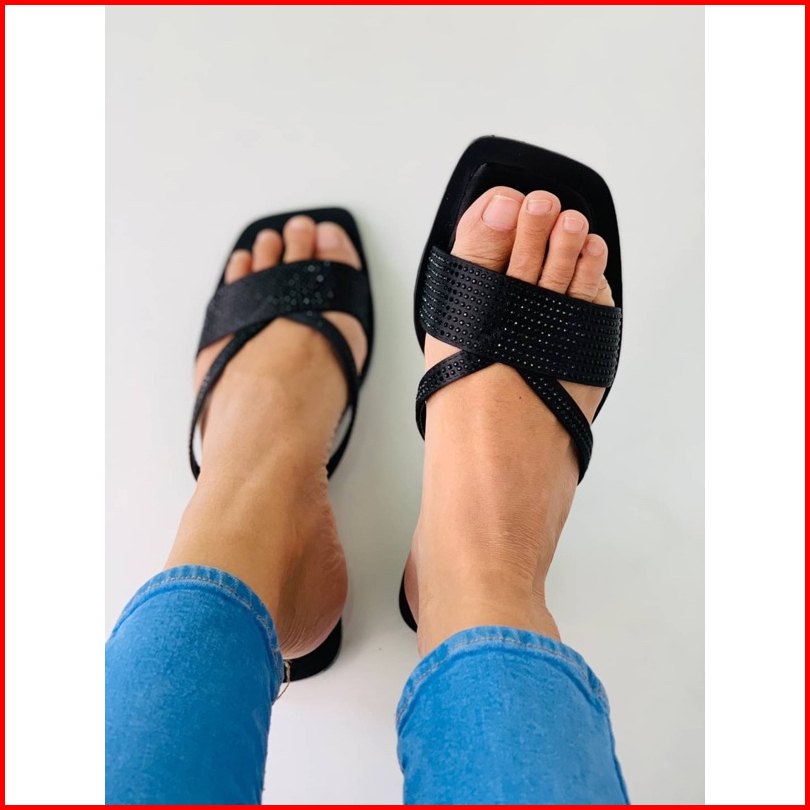 Sandal Wanita Kekinian Zs557 Elegant Dark Sendal Flat