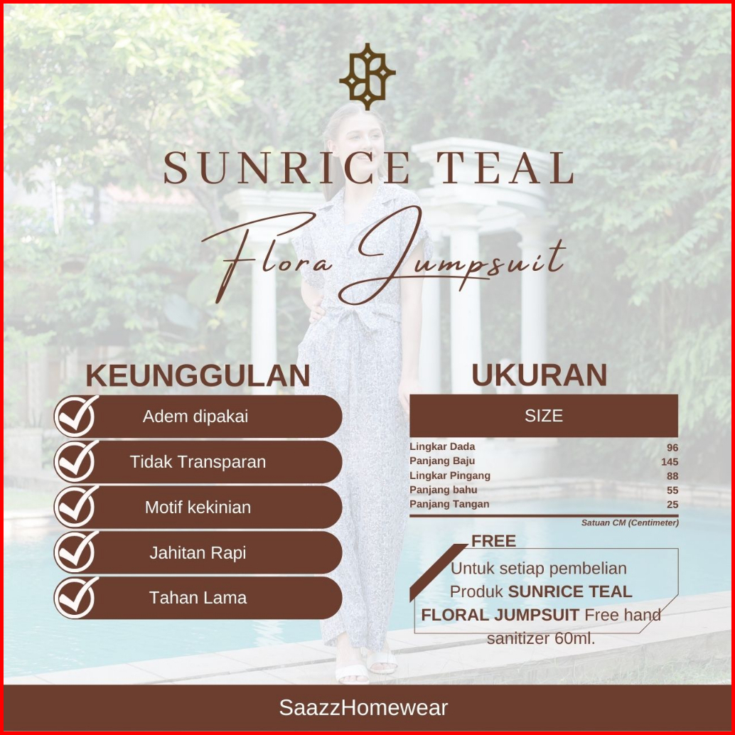 Saazz Sunrice Teal Flora Jumpsuit- Fashion Style Korean Look Jumpsuit Remaja Outfit