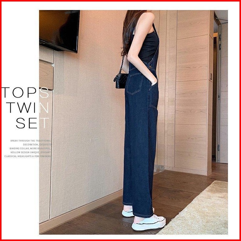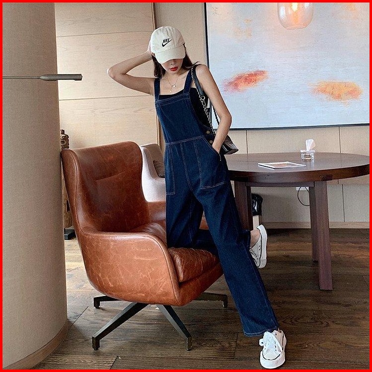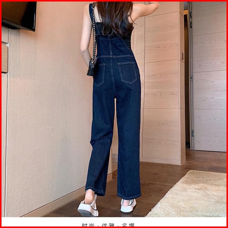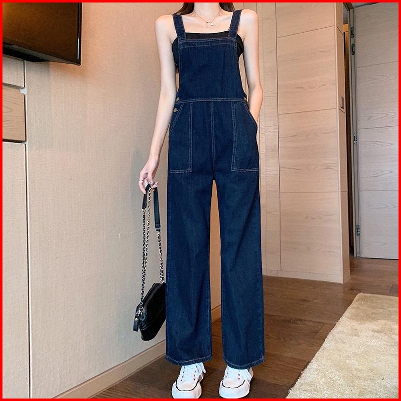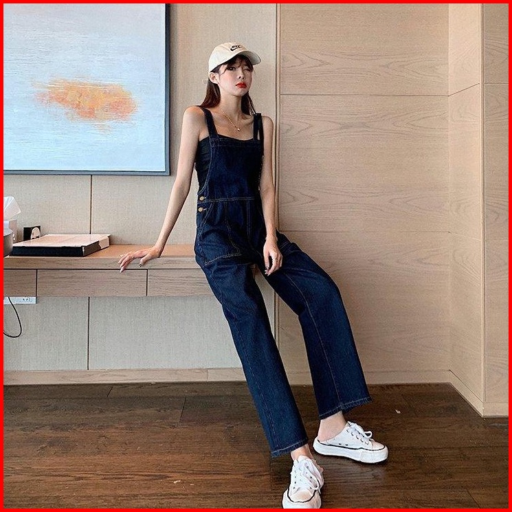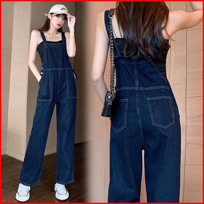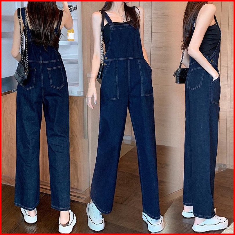 Celana Dungaree Wanita Warna Biru Gelap Versi Korea