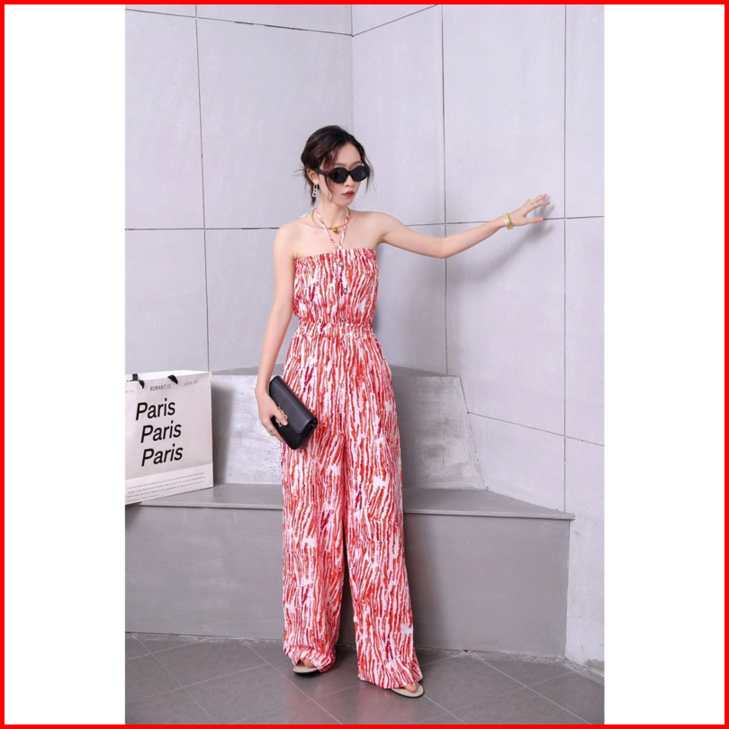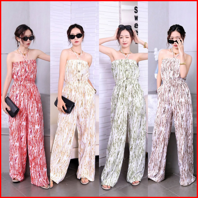Salum Jumpsuit Casual Summer Pantai Sexy Bangkok Liburan Manis Pastel Korea Style Look Chic Red Yellow Green Orange Brow