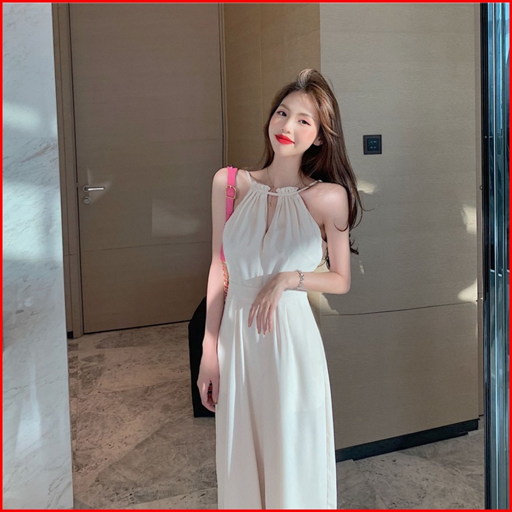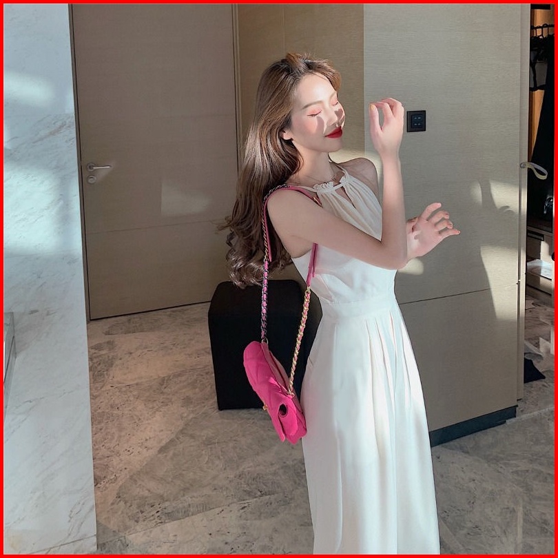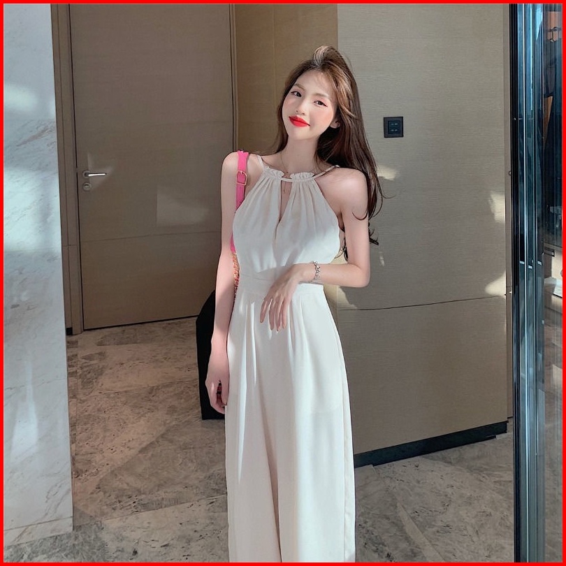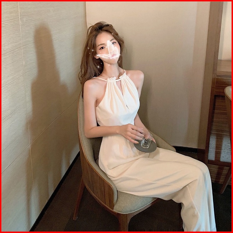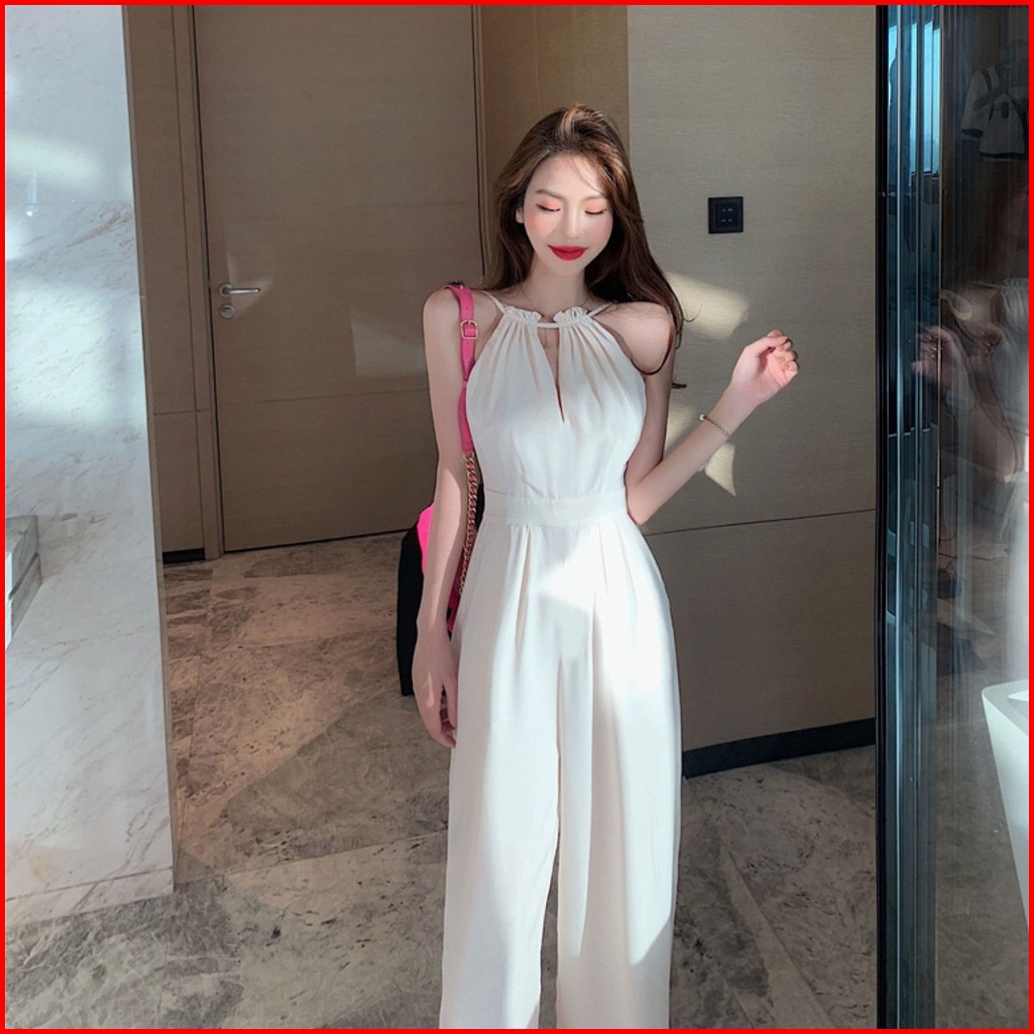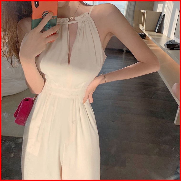 Miscoo - Agnes Jumsuit - Korean Formal Katun Long Ruth Halter Neck Hollow Out Jumsuit - Bahu Baring Putih Elegant Putih
