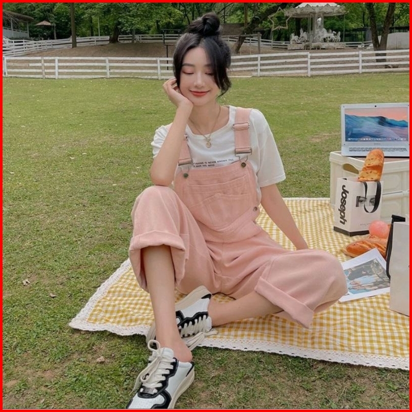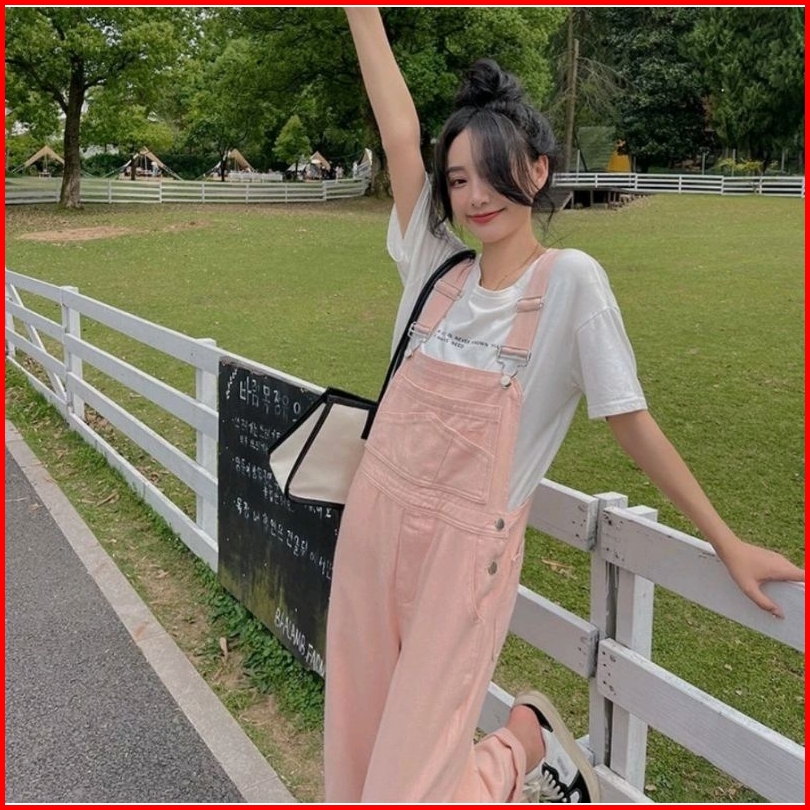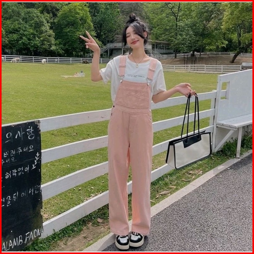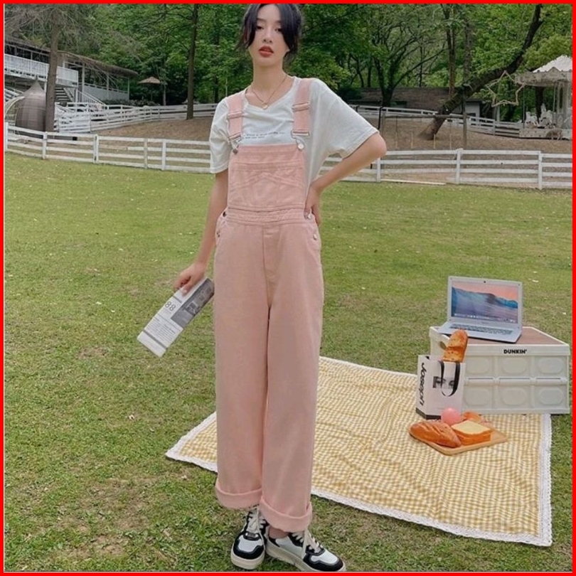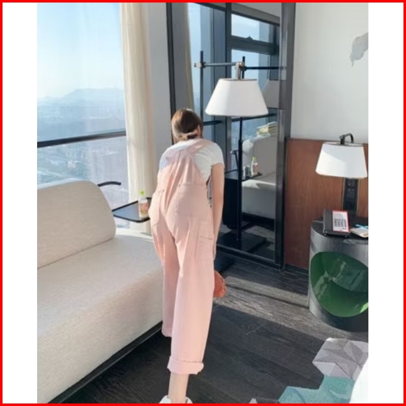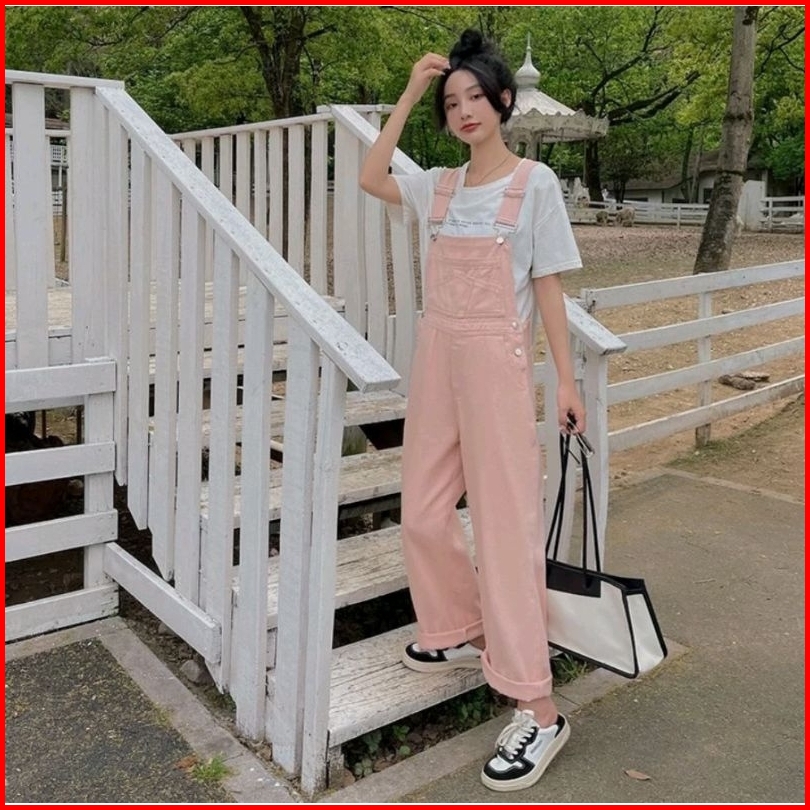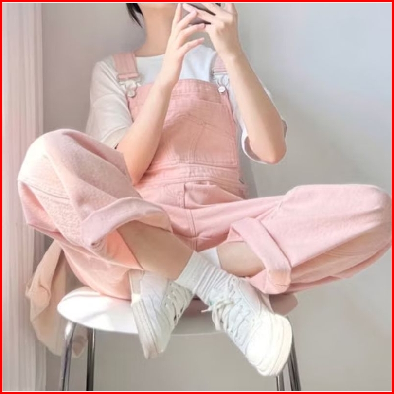 Jumpsuit Jeans Wanita Warna Merah Muda Celana Gantung Wanita Warna Merah Muda Longgar