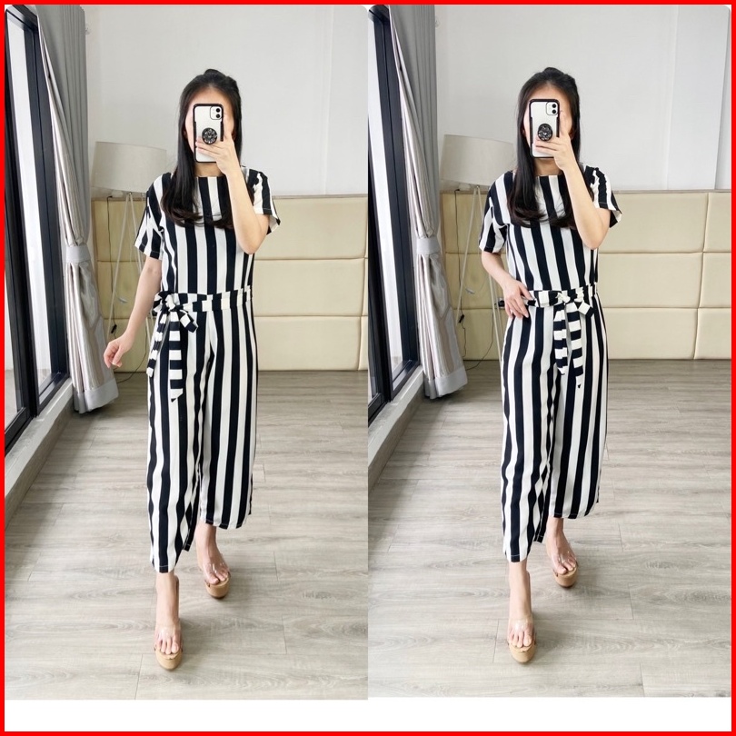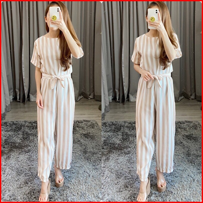 Jumpsuit Wanita Jumpsuit Salur Jumpsuit Panjang K 8503