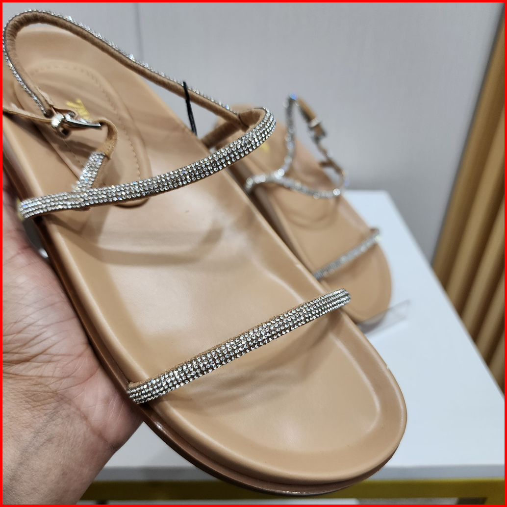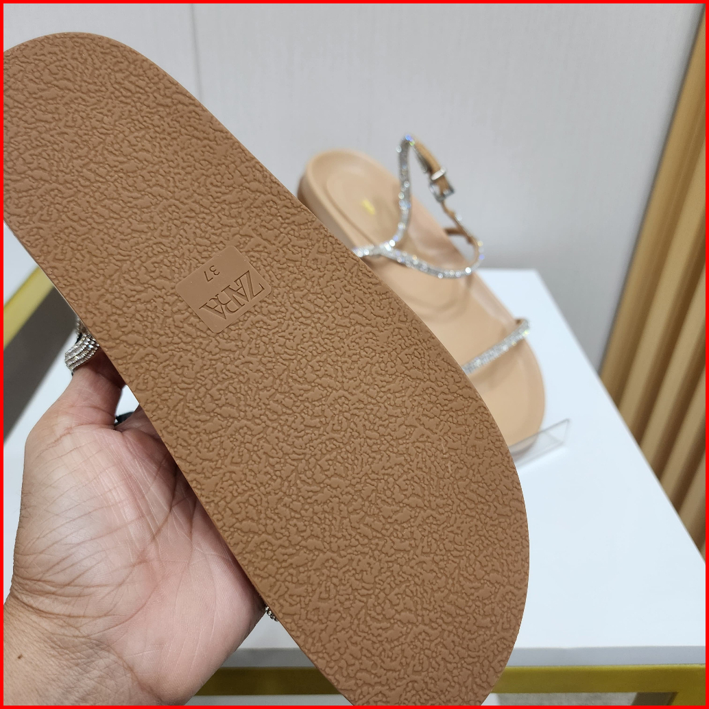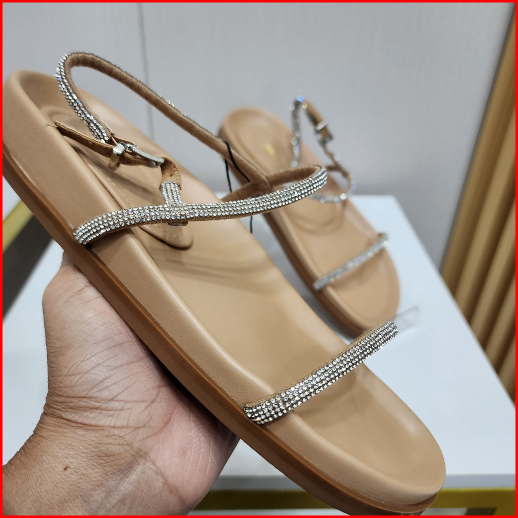 Sandal Flat Slingback Wanita Kekinian Zr 135 Coklat Sintetis