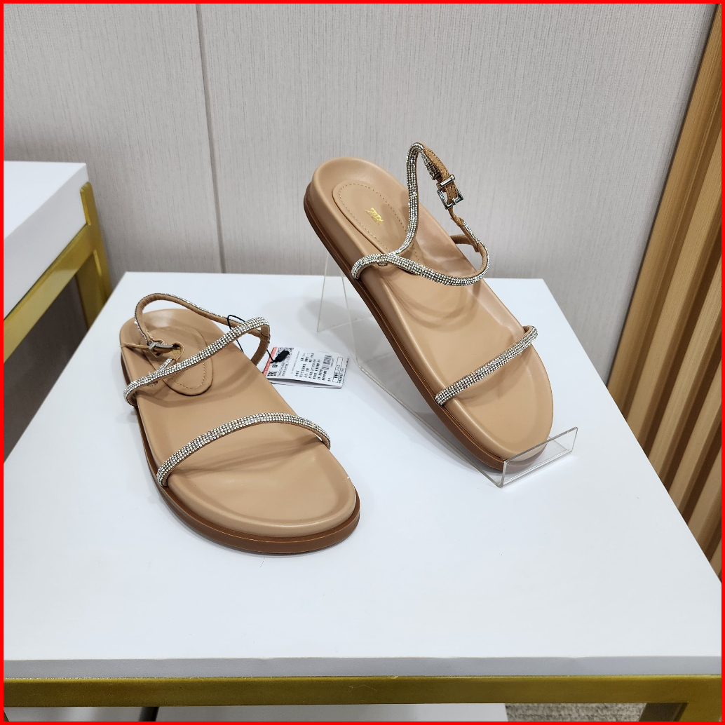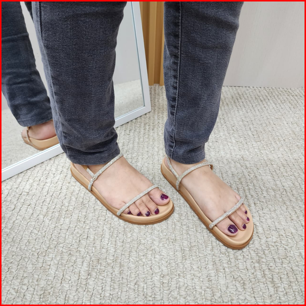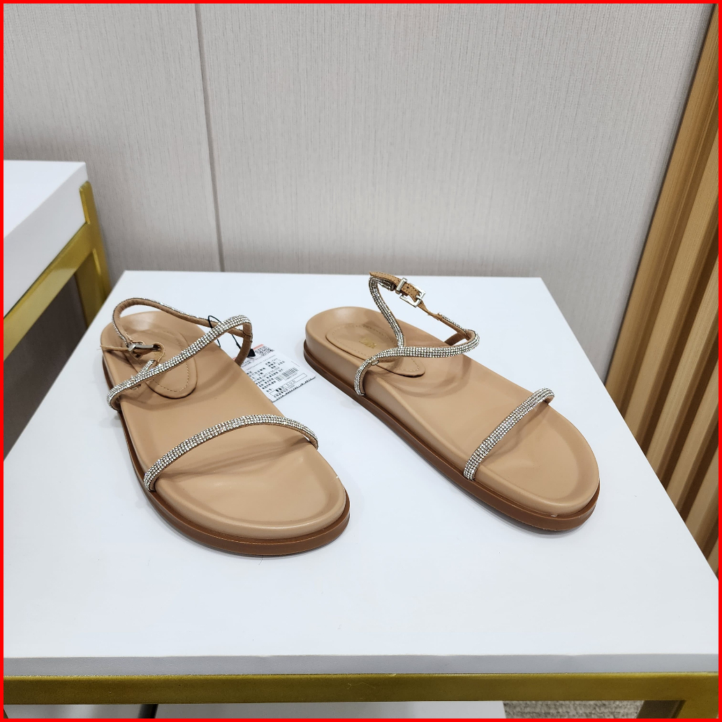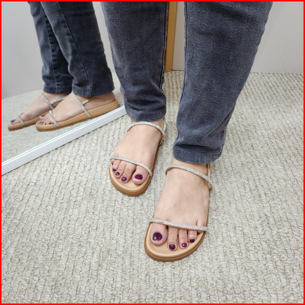 Sandal Flat Slingback Wanita Kekinian Zr 135 Coklat Sintetis