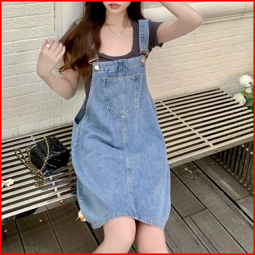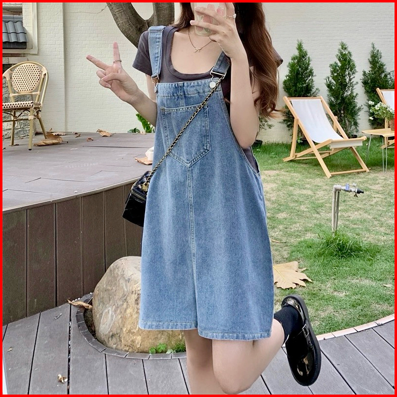 Beevalue Jumpsuit Jeans Overall Wanita Rok 3 4 Korean Style Bahan Denim Premium Outfit Wanita Kekinian Overall Rok Denim