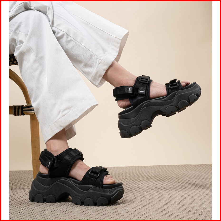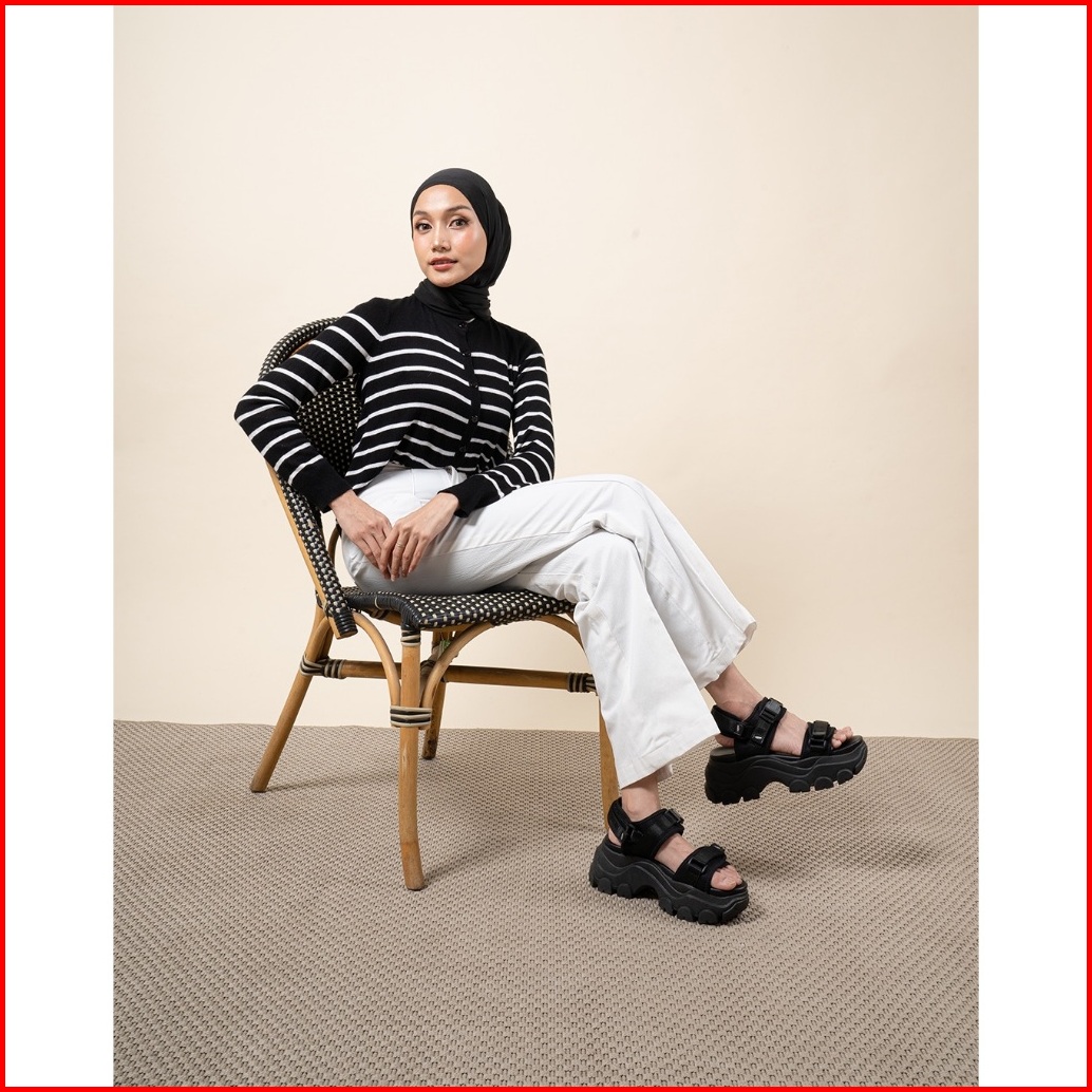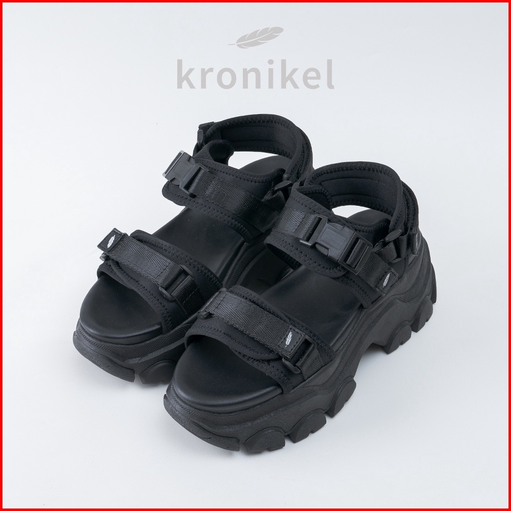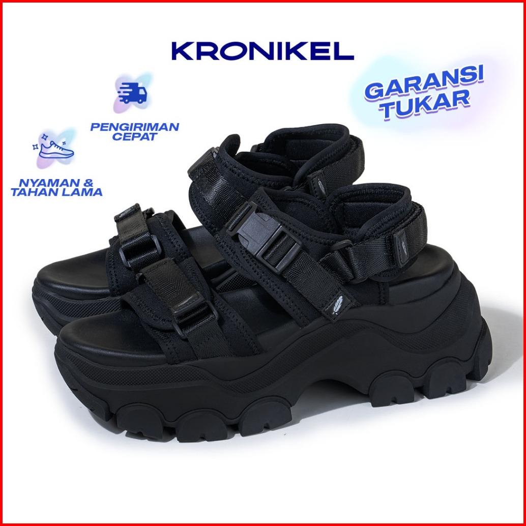 Kronikel Osaka Sandal Tinggi Tali Wanita Chunky Concert Sandal Hitam Black