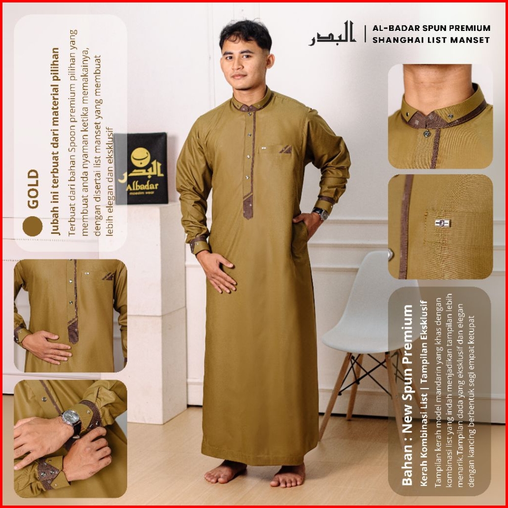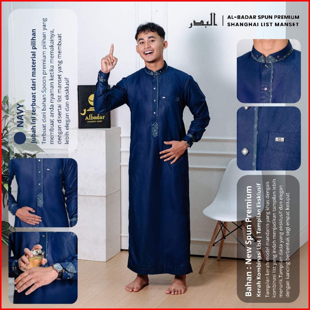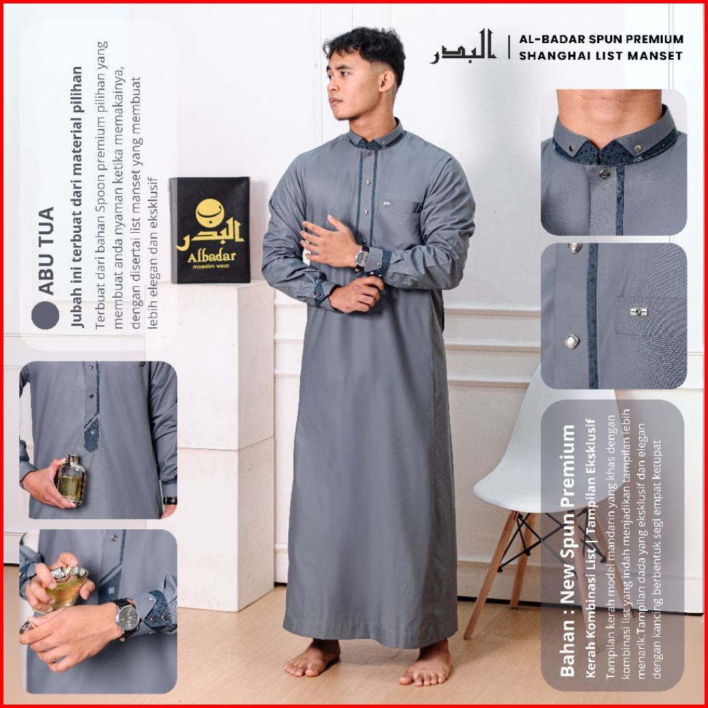 Gamis Jubah Pria Muslim Al Badar Katun Spun Manset
