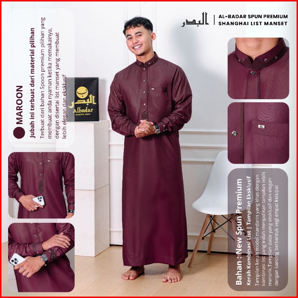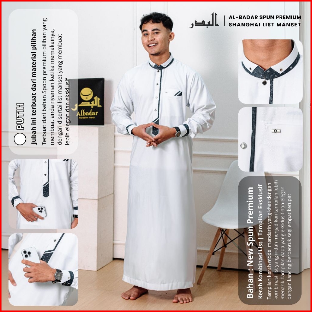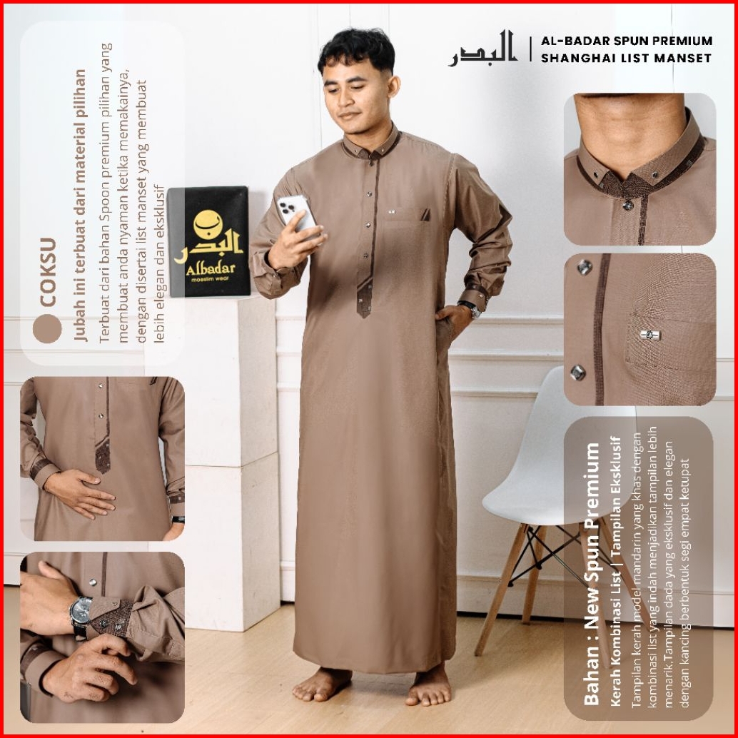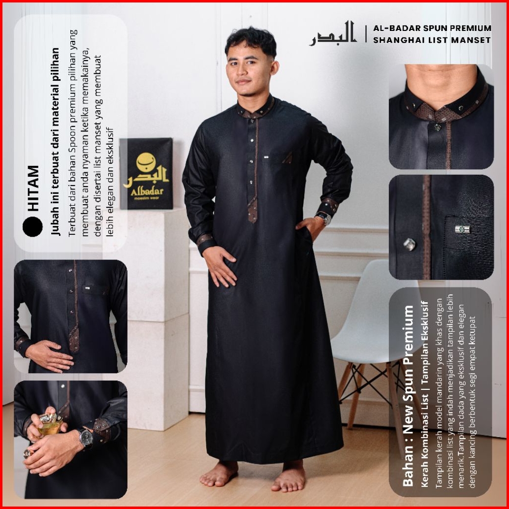Gamis Jubah Pria Muslim Al Badar Katun Spun Manset