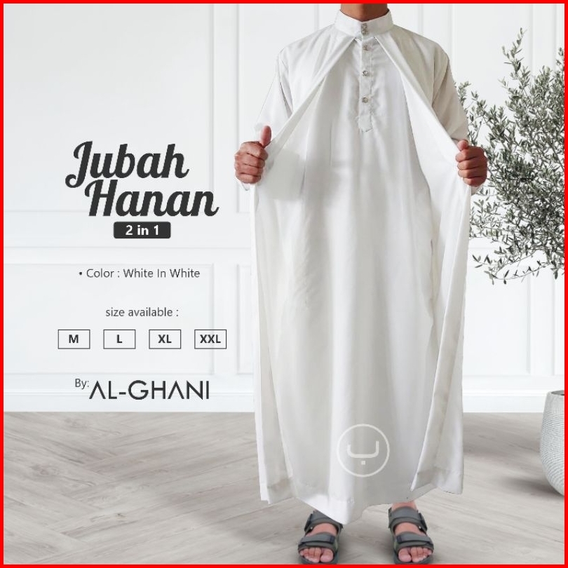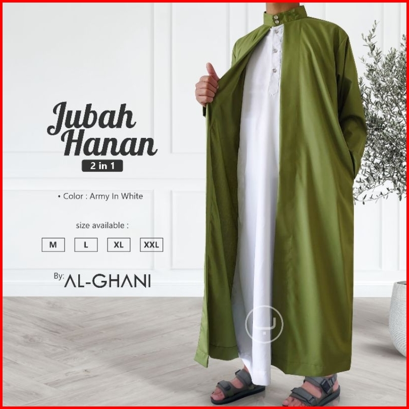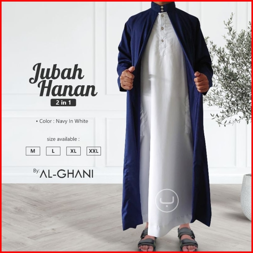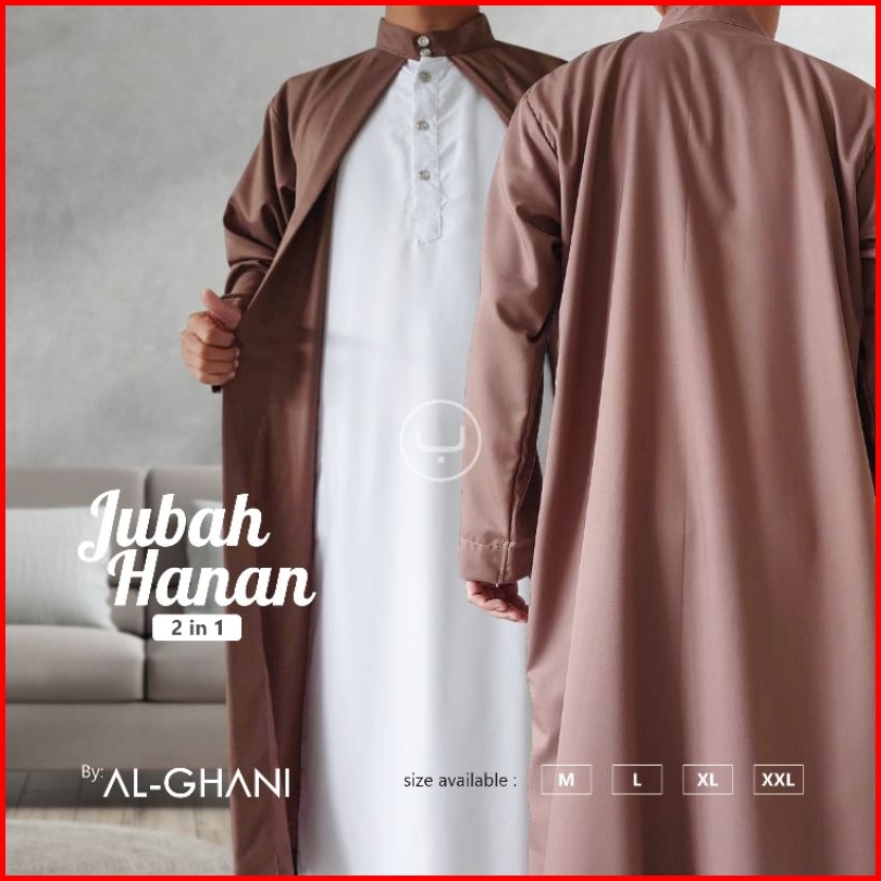 Alghani - Jubah Hanan 2 In 1 Luar Dalam Gamis Pria Lengan Panjang Bahan Katun Exclusive By Alghani