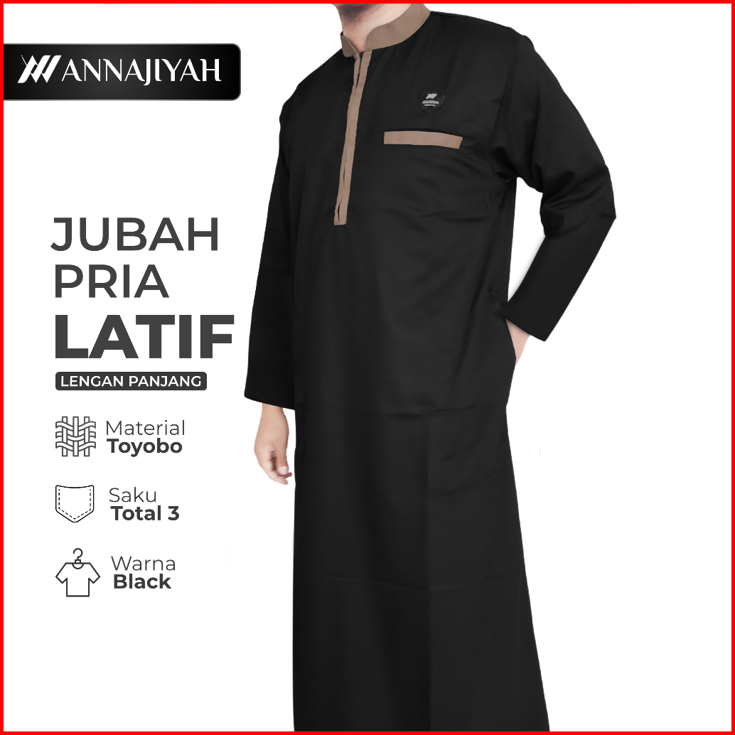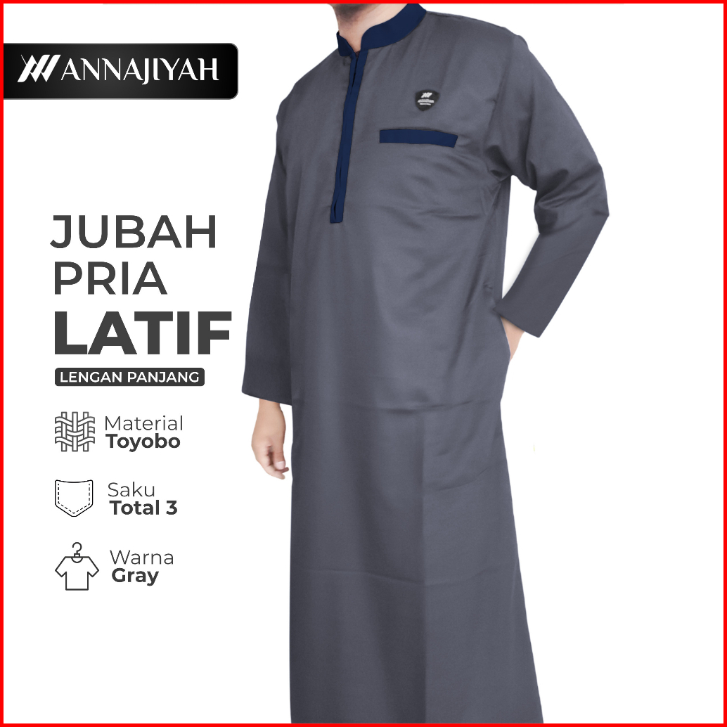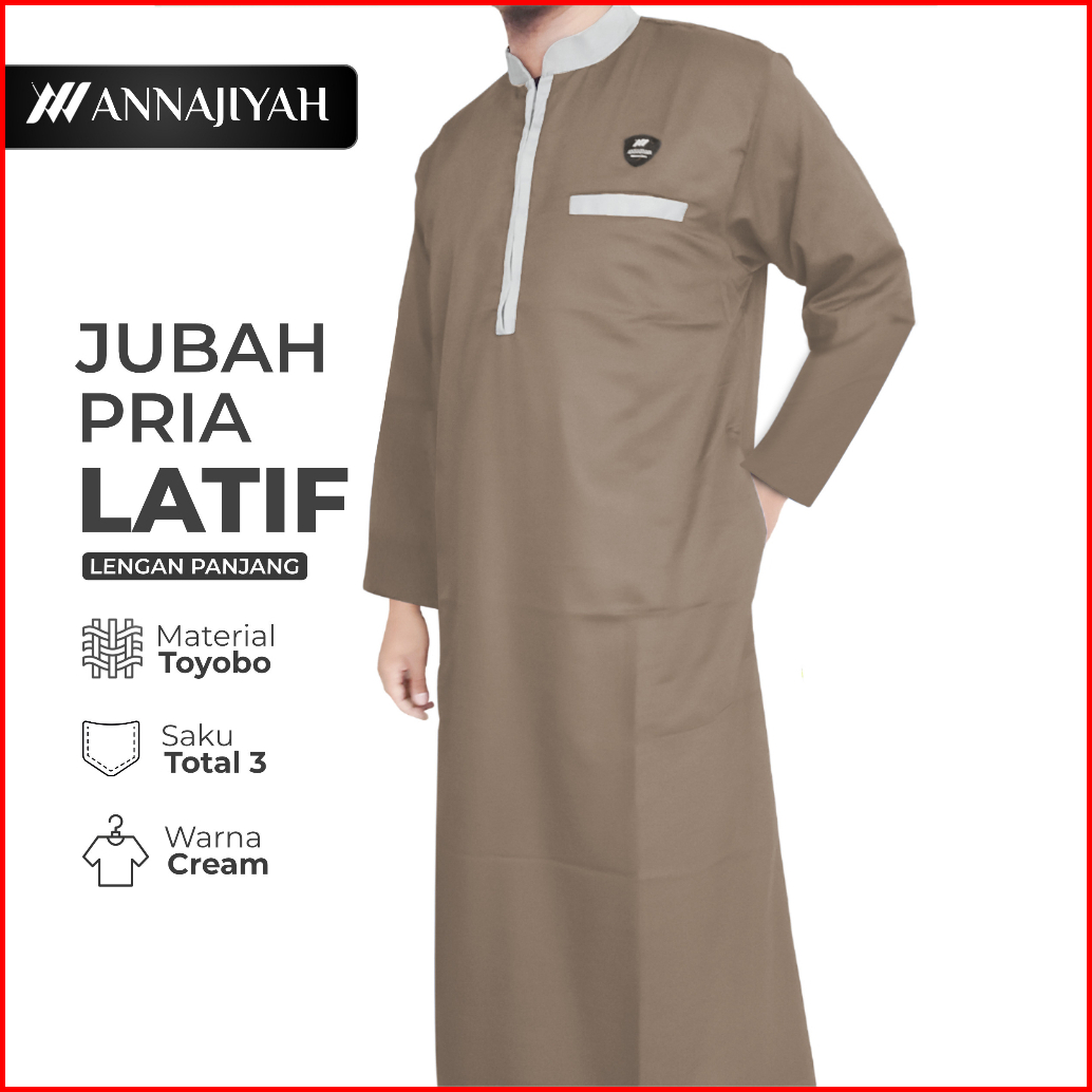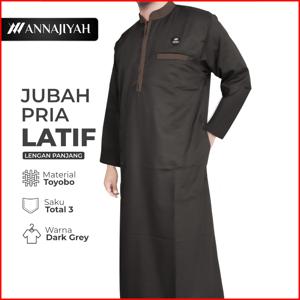 Jubah Gamis Lengan Panjang Pria Dewasa Dan Remaja Latif Polos Annajiyah Bahan Original Toyobo Premium