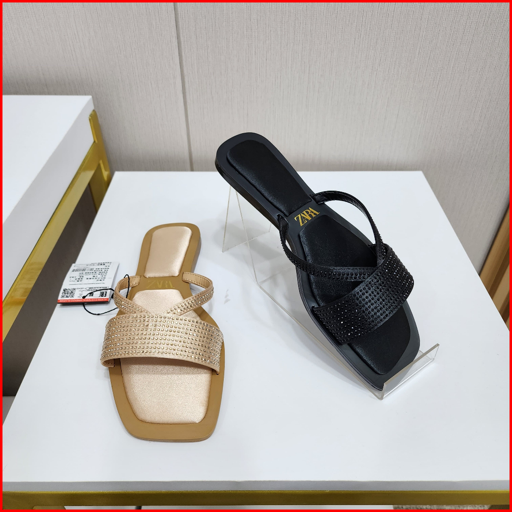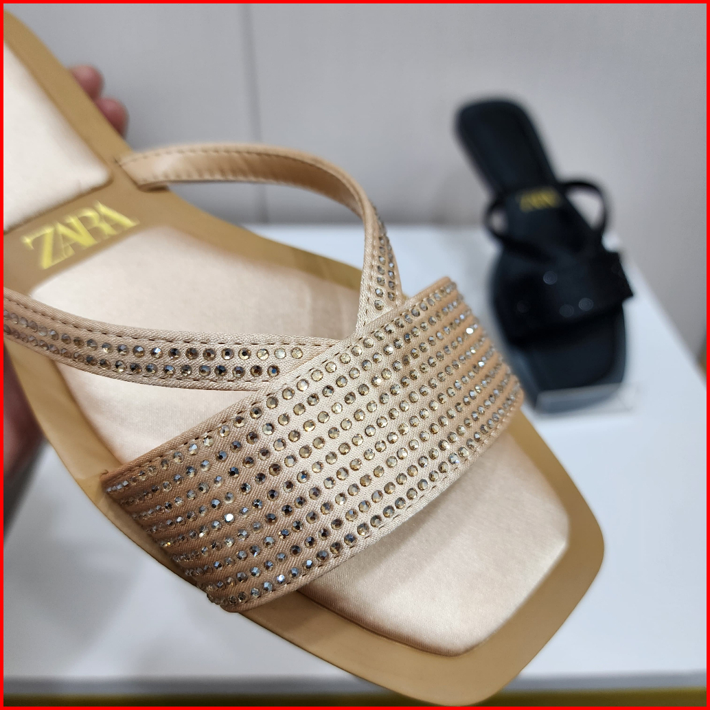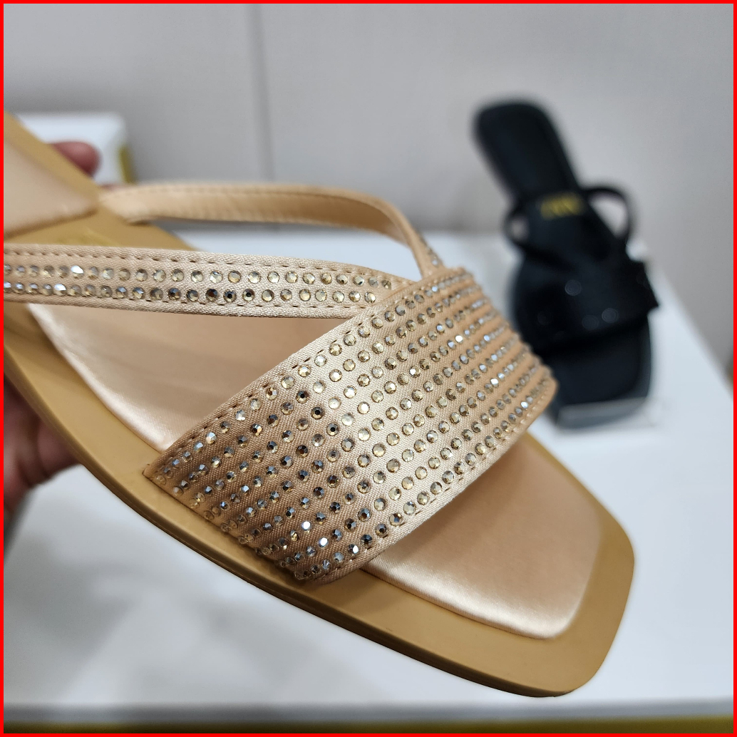 Sandal Flat Teplek Wanita Kekinian Zr 117 Apricot Black