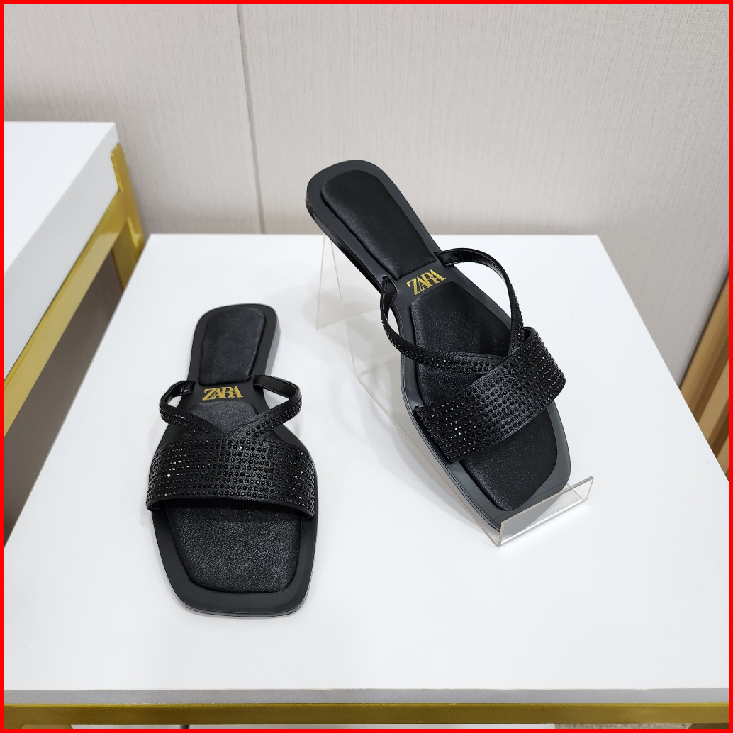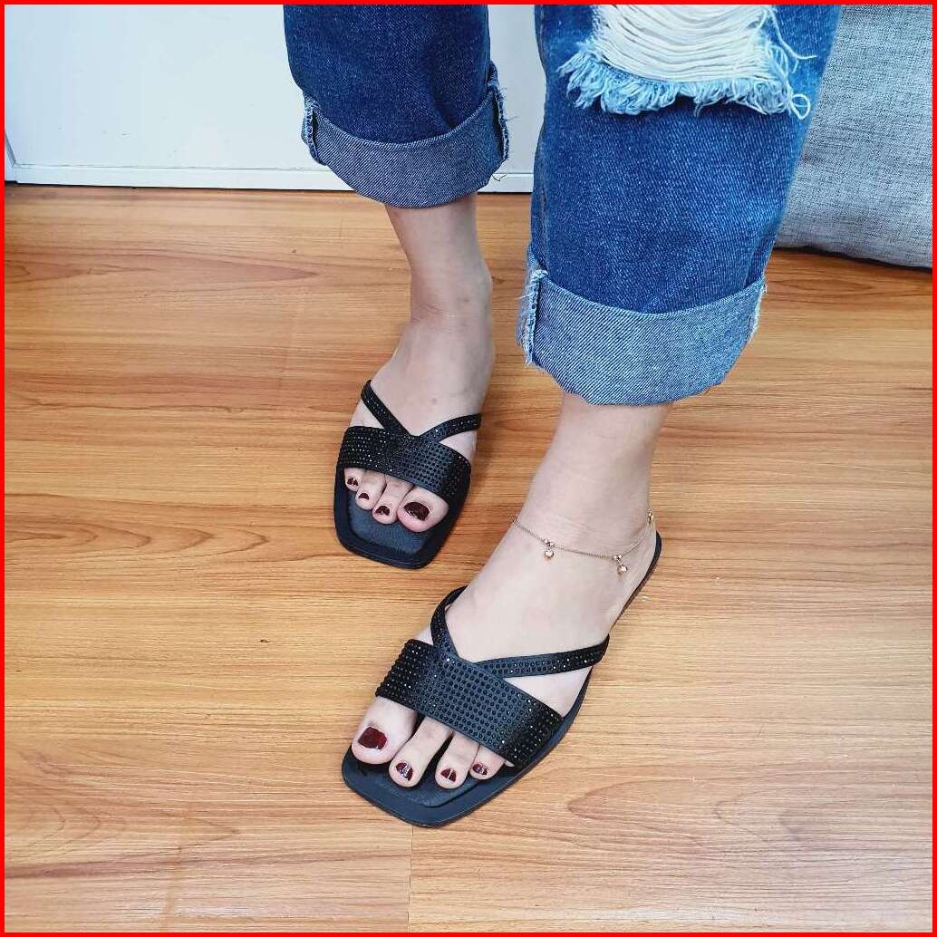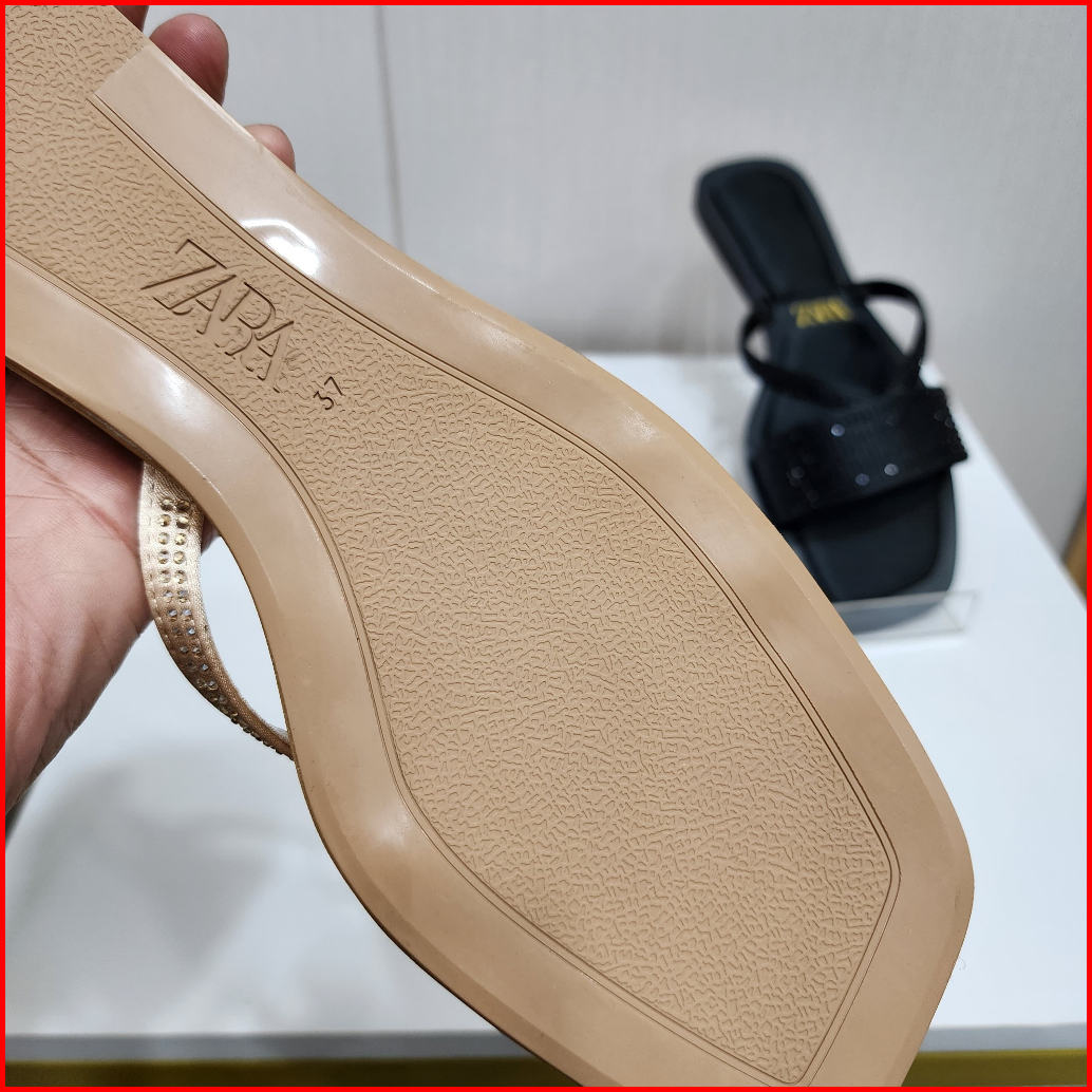 Sandal Flat Teplek Wanita Kekinian Zr 117 Apricot Black