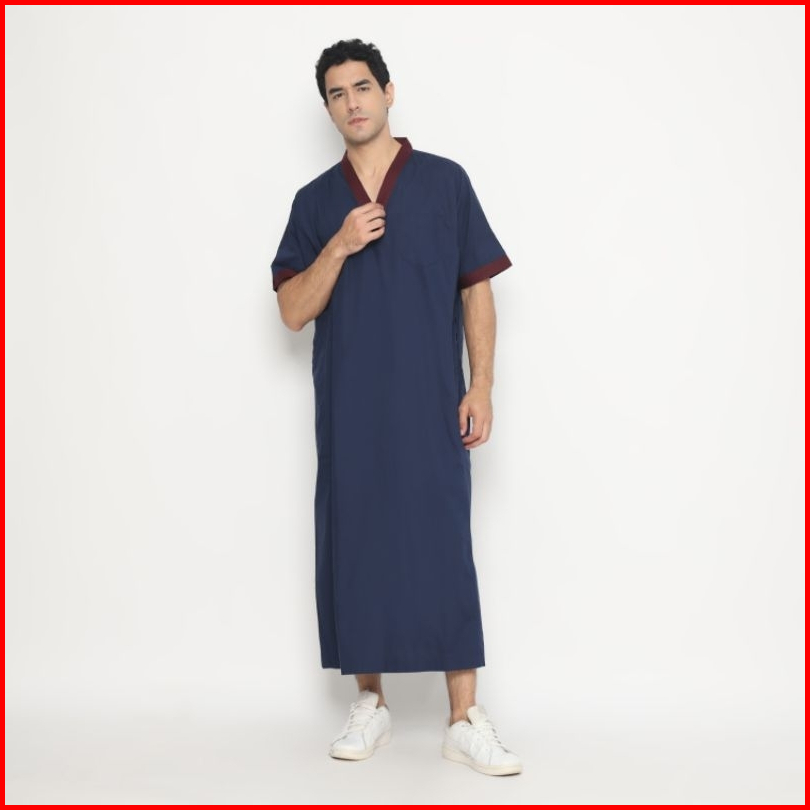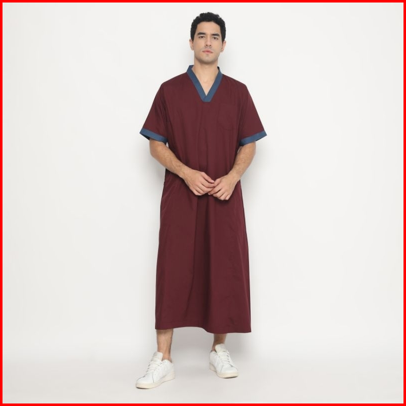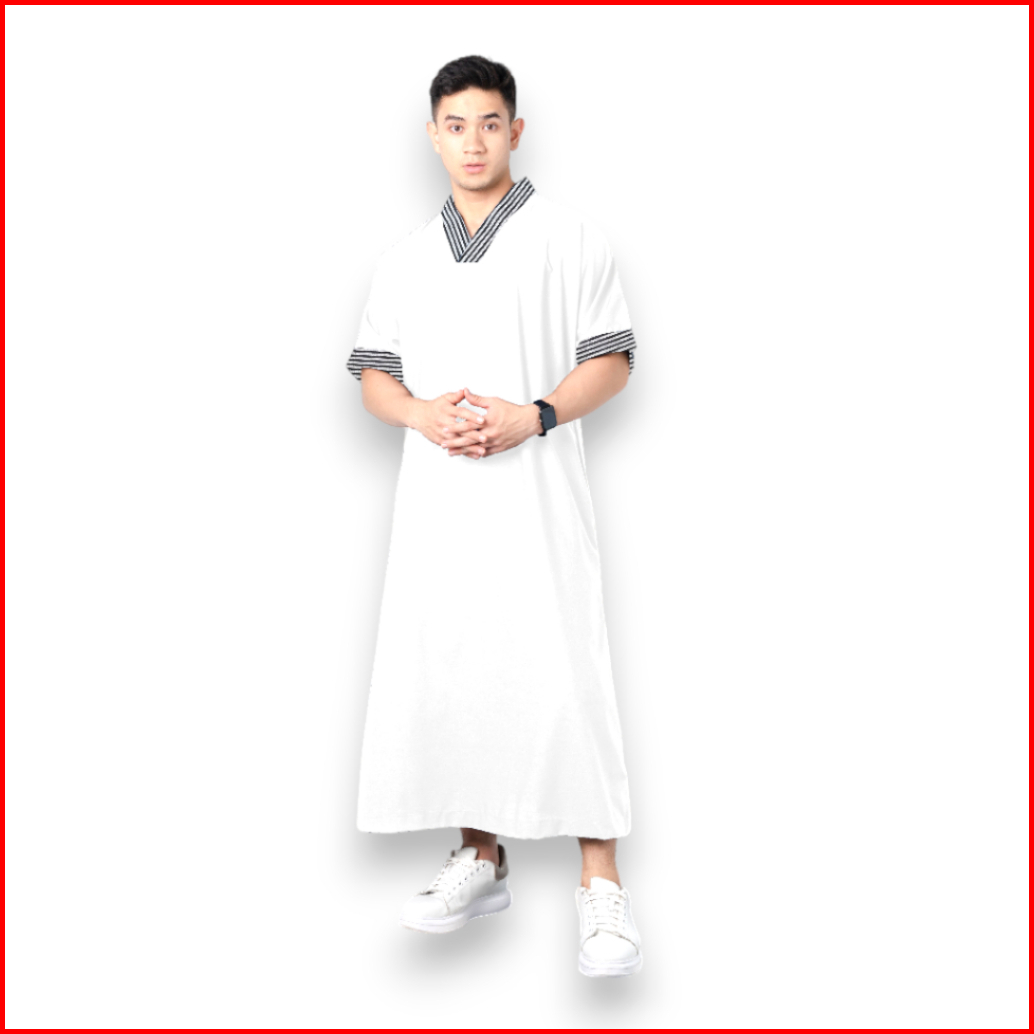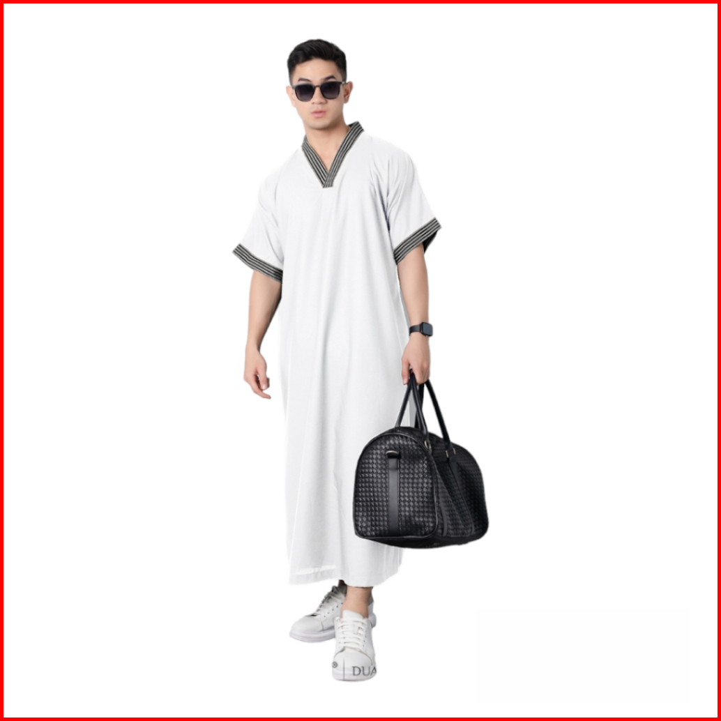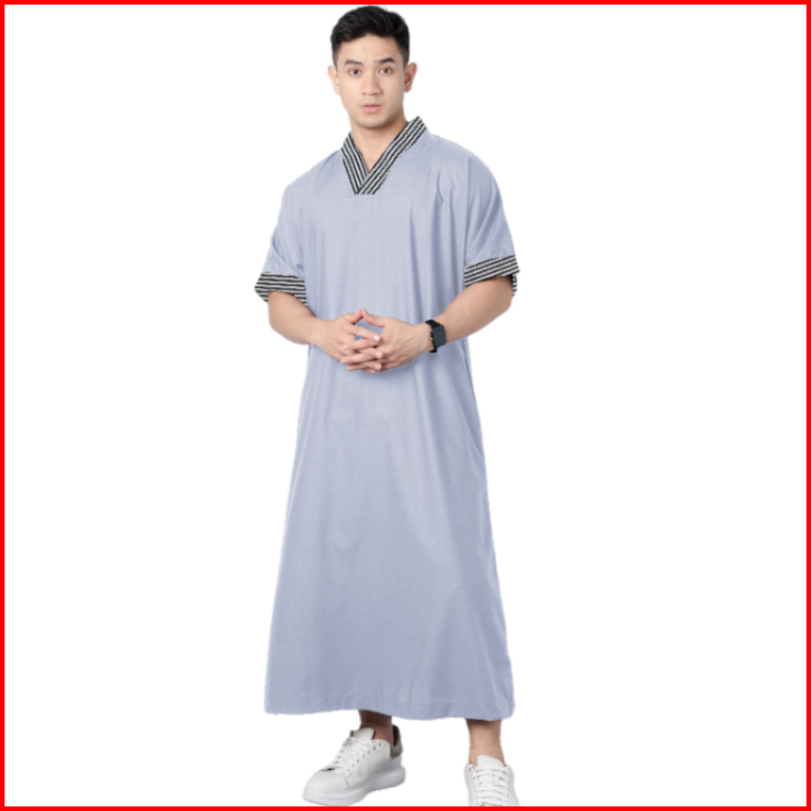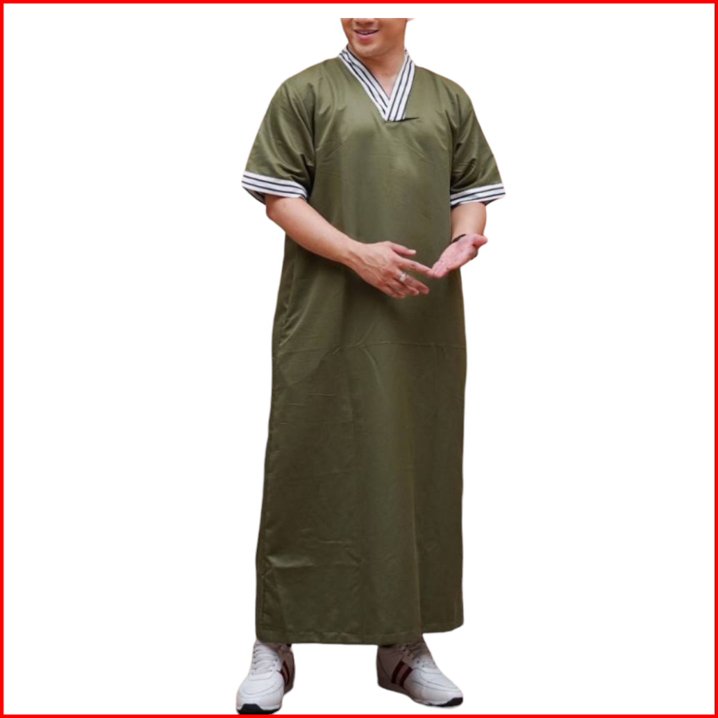 Jubah Gamis Maroko Pria Dewasa Lengan Pendek Kerah V Bahan Katun
