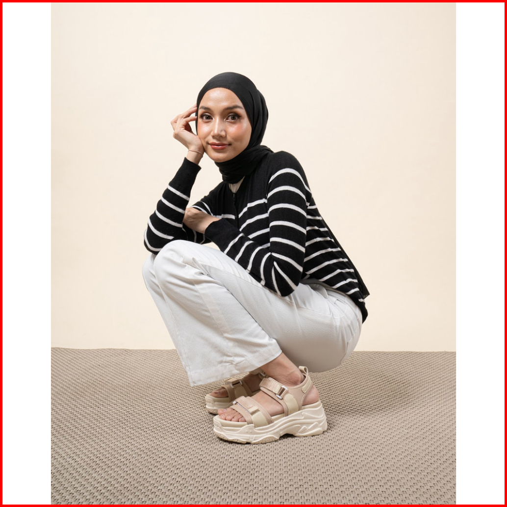 Kronikel Skylar Sandal Tinggi Tali Wanita Chunky Concert Sandal Off White