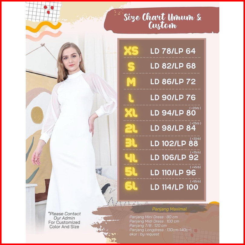XS (LD78/LP64), S (LD82 / LP68), M (LD86 / LP72), L (LD90 / LP76), XL (LD 94 / LP 80 ), 2L( LD 98 / LP 84 ), 3L( LD 102 / LP 88), 4L( LD 106/LP 92 ), 5L( LD110 /LP 96 ), 6L(LD 114 /LP 100 )