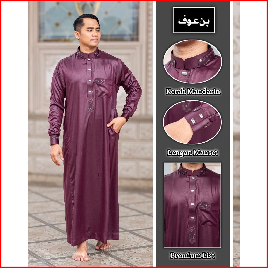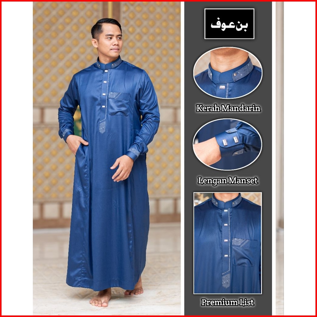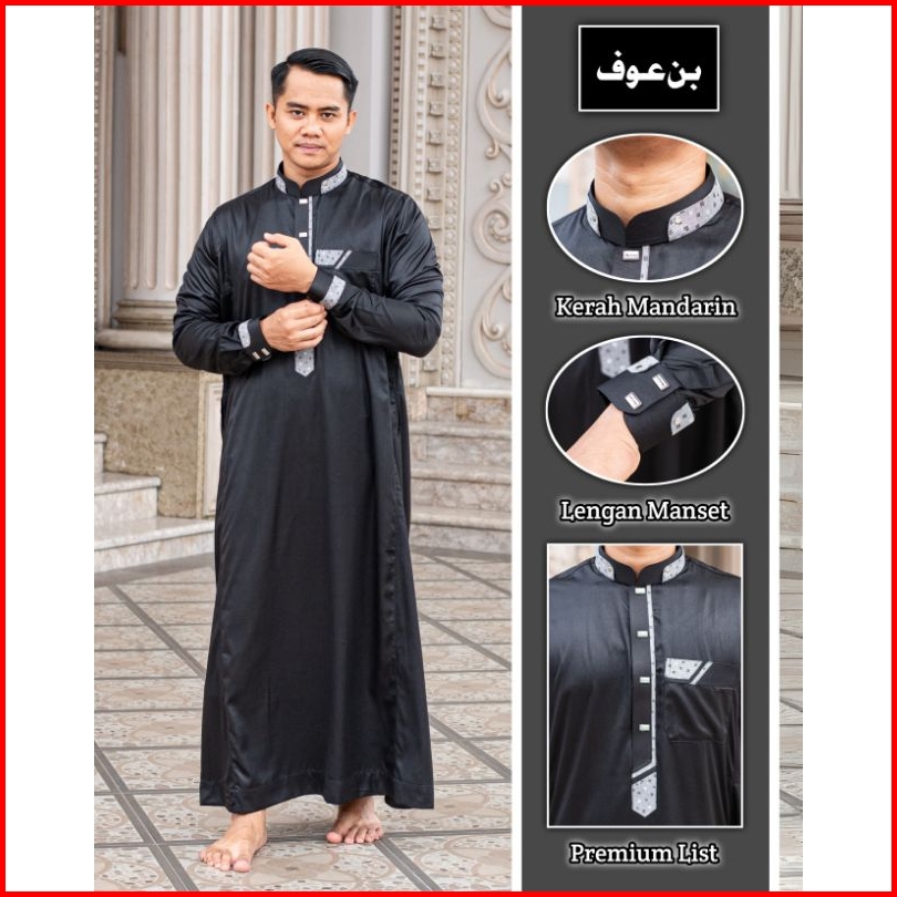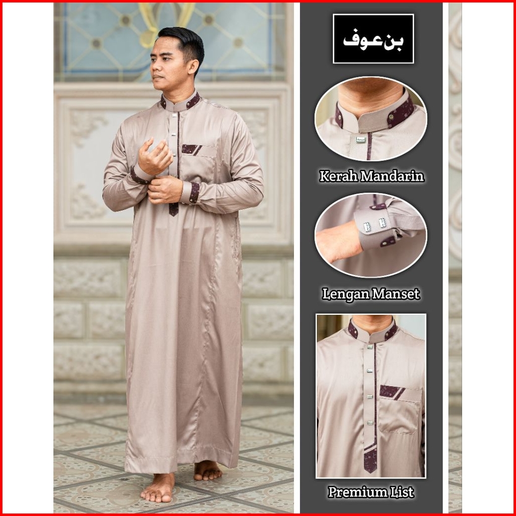 Gamis Jubah Pria Muslim Poliester Bin Auf Manset