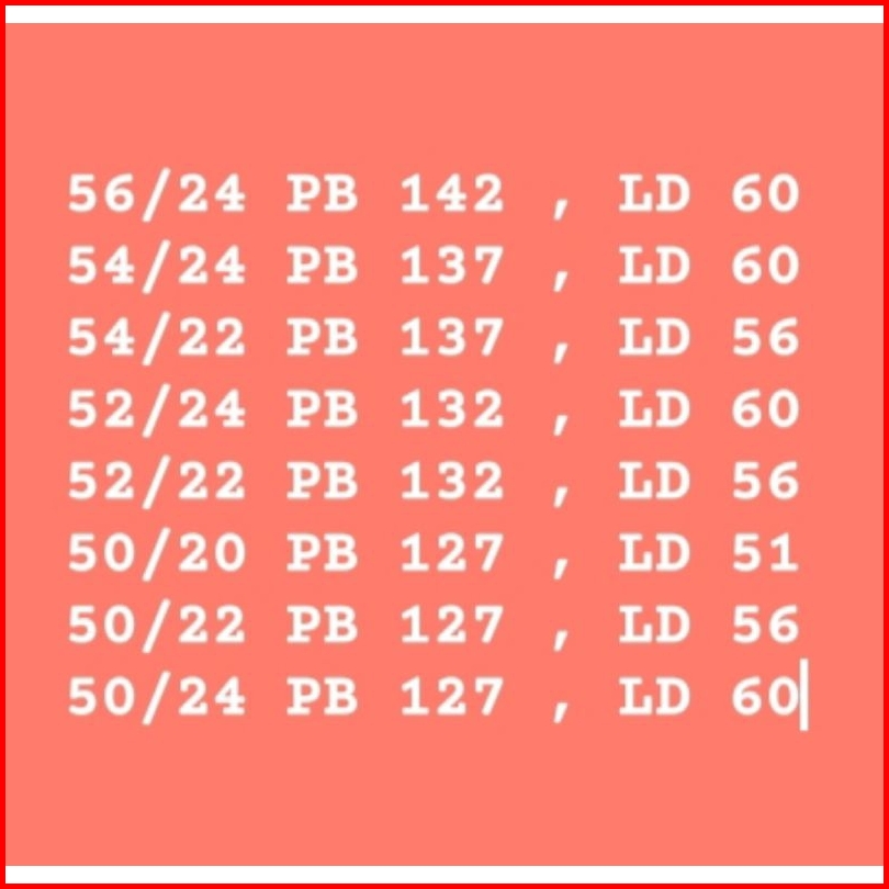 50/22, 50/24, 52/22, 52/24, 54/22, 54/24, 56/24, 56/26