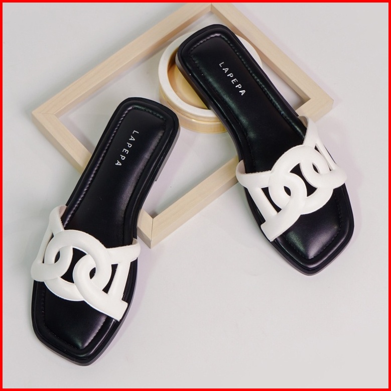 Lapepa Yuk - Sora Sandal Wanita Teplek Korea Casual Size 36 - 40 Sendal Slop Empuk Flat Cewek Kasual Rumahan Warna White