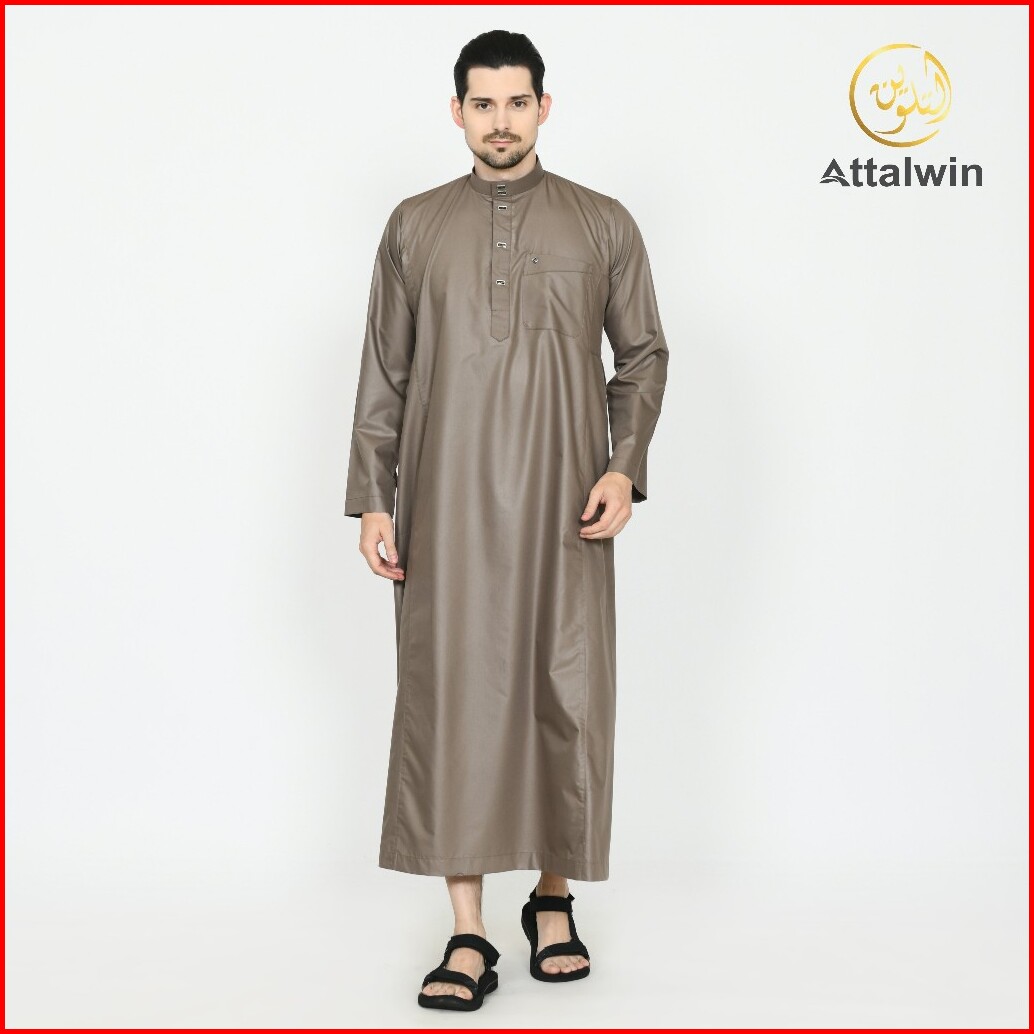 Attalwin - Gamis Jubah Pria Muslim Umroh Haji Polos Tanpa Manset Jd001