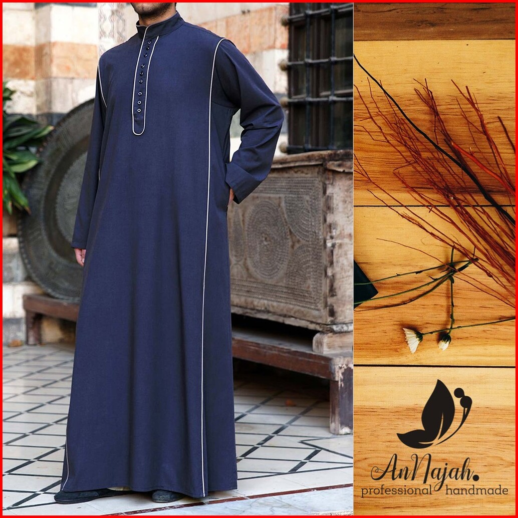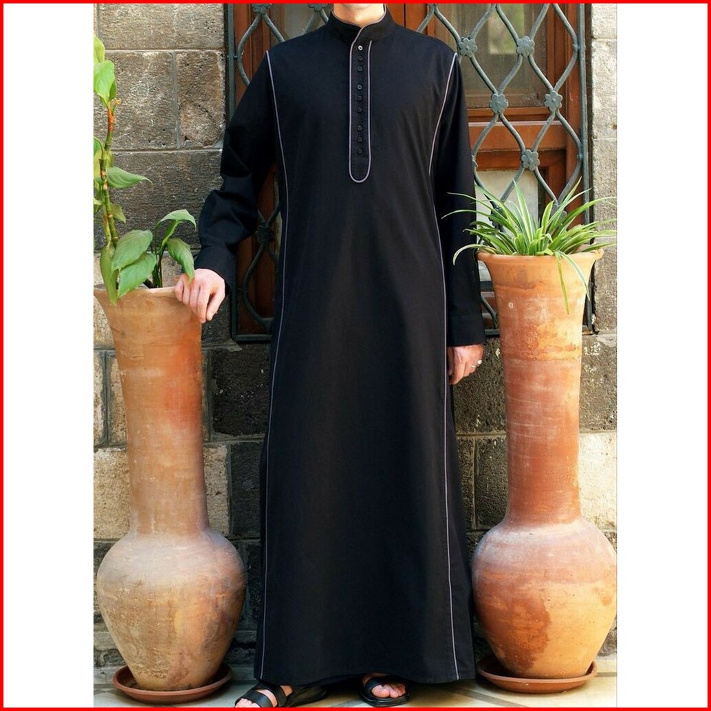 Jubah Pria Gamis Pria Thobe Coklat 1 An-2 Thobe Strip Lengan Panjang Saudi Yaman