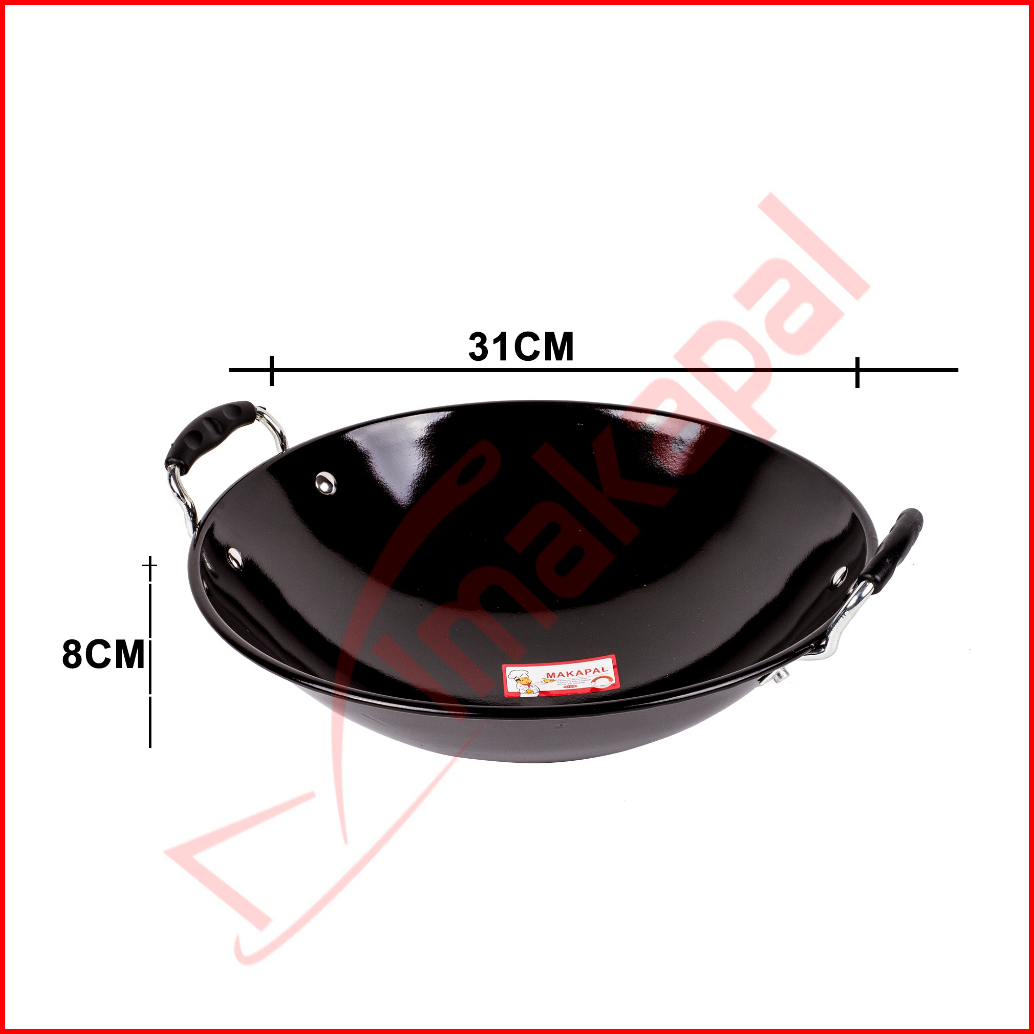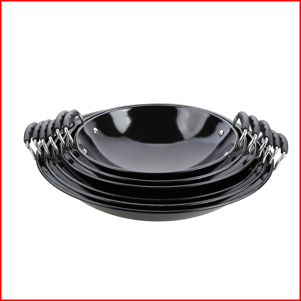 Kuali Enamel Hitam Anti Lengket Anti Gores Gg Plastik Wok Masak Wajan Tebal 31-46cm
