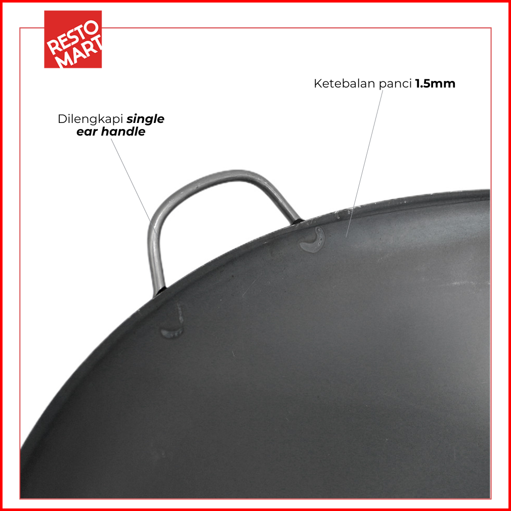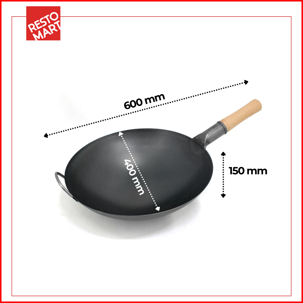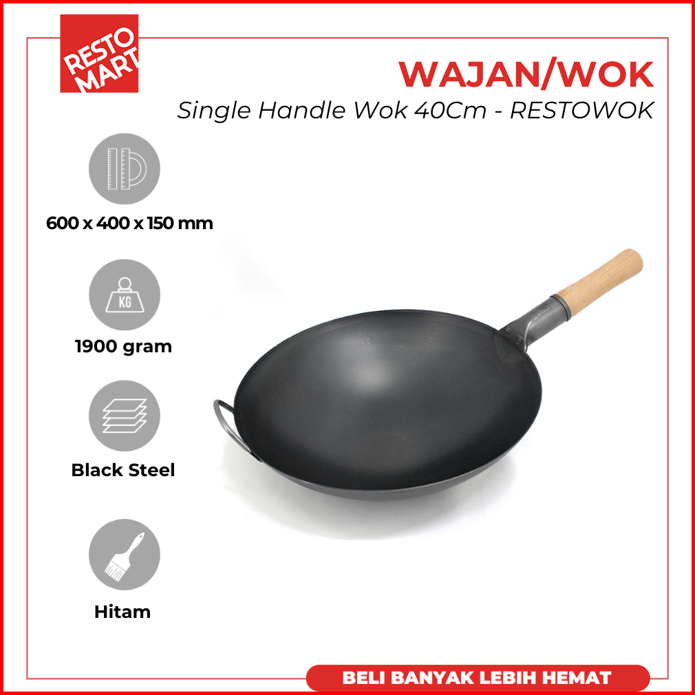 Wajan Baja Pre Seasoned Kuali Wajan Black Steel Single Handle Wok 40 Cm Restowok Black Steel 2291082 F12