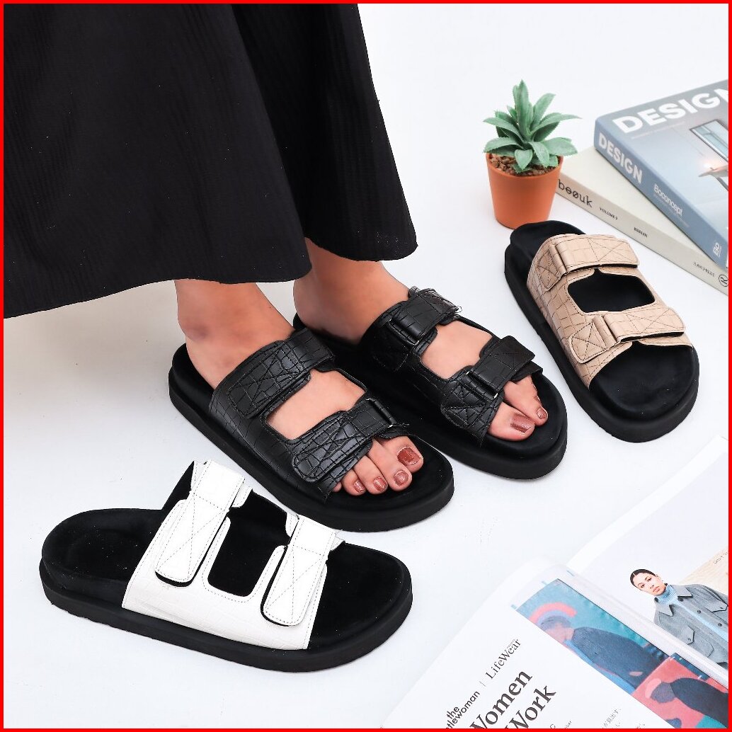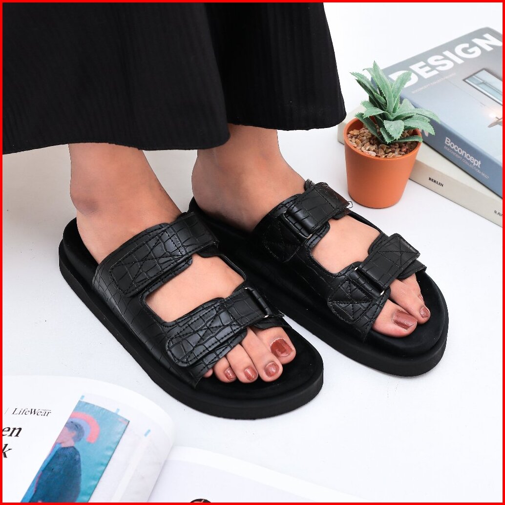 Green Love Sandal Wanita Crocus Bahan Croco Bludru