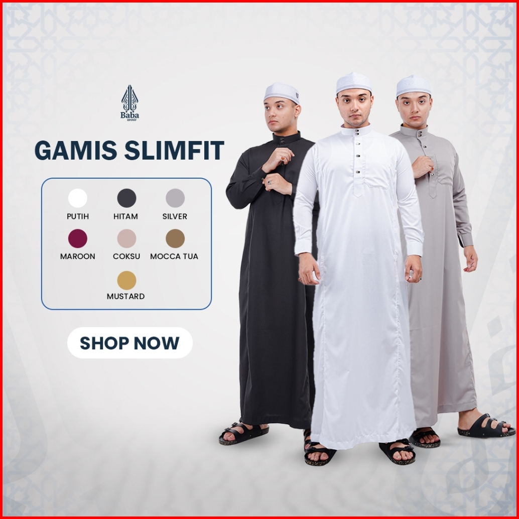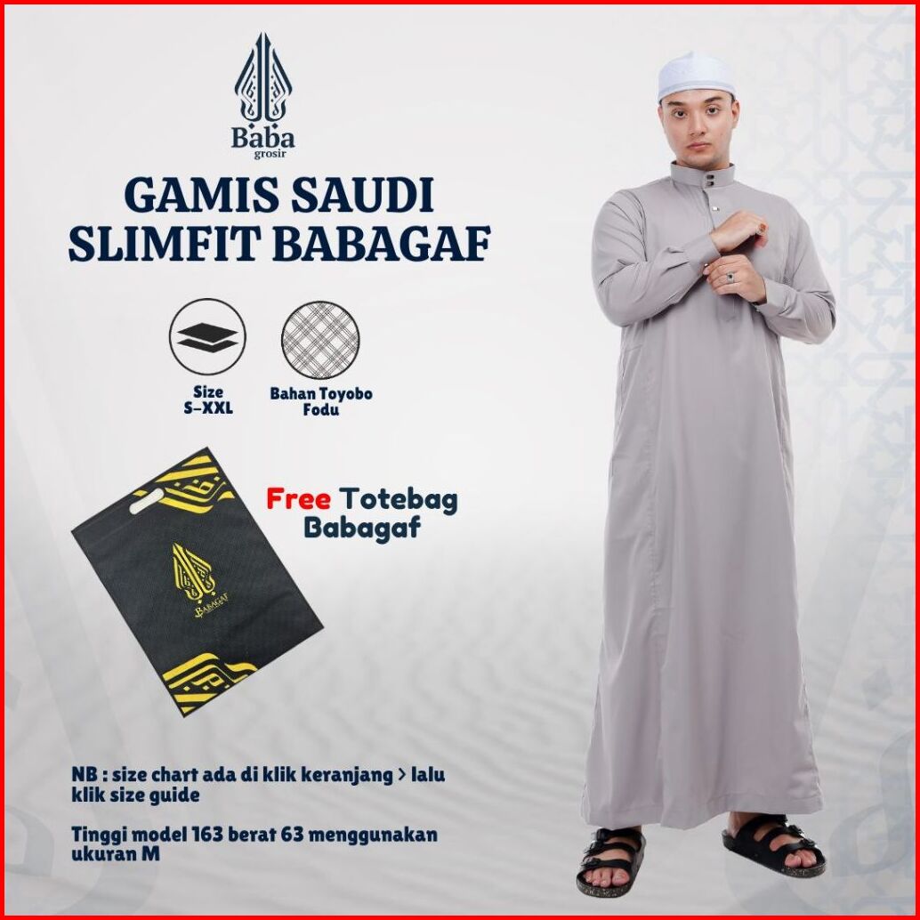 Gamis Jubah Pria Saudi Slimfit Babagaf Lengan Manset