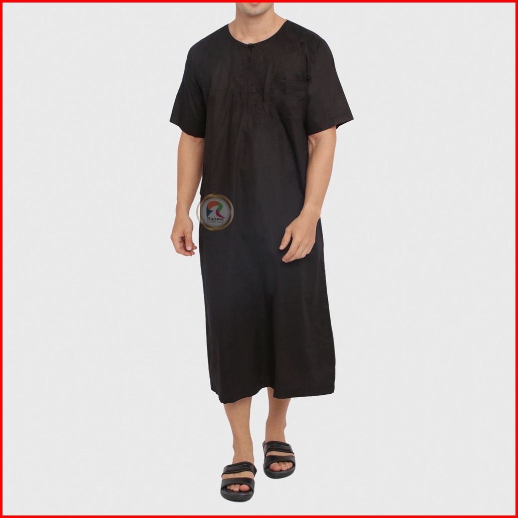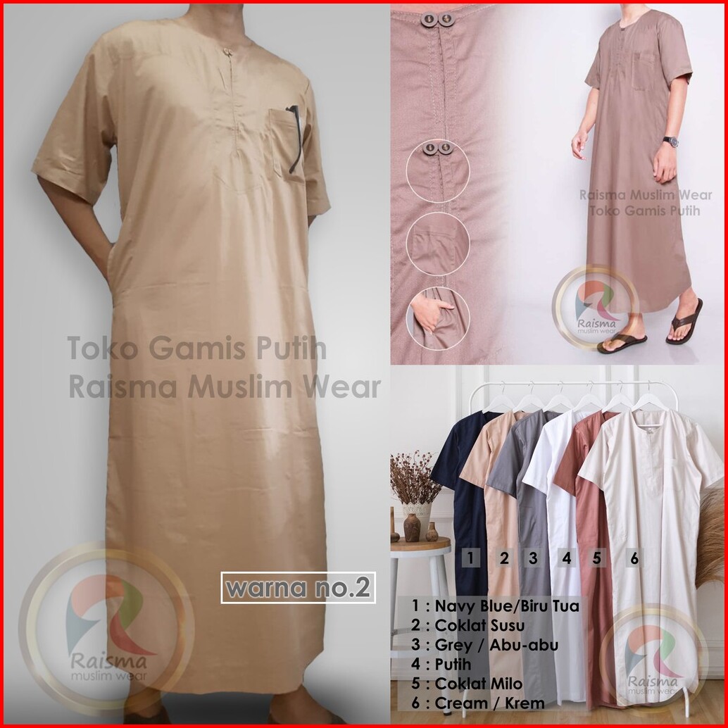 Raisma - Jubah Pria Lengan Pendek Navu Blue Coksu Grey Putih Cream Busana Gamis Pria Lengan Pendek