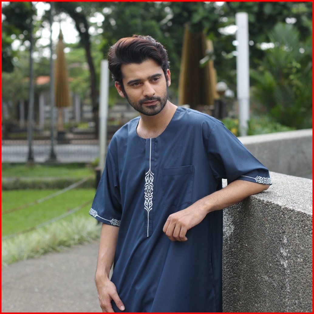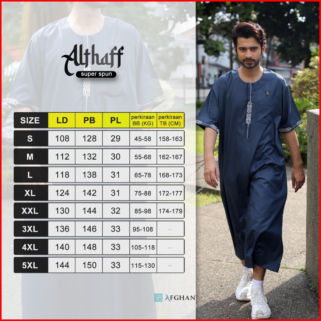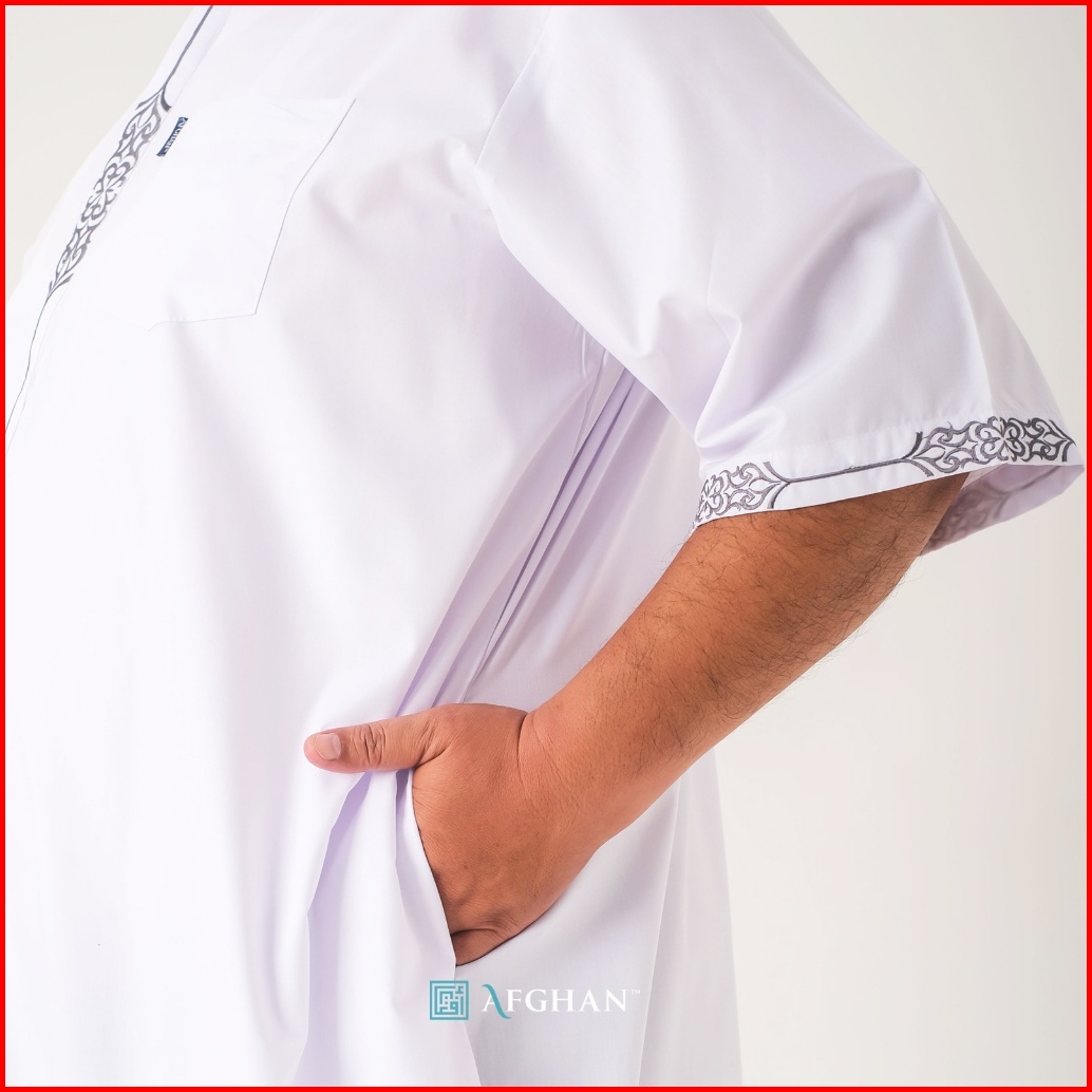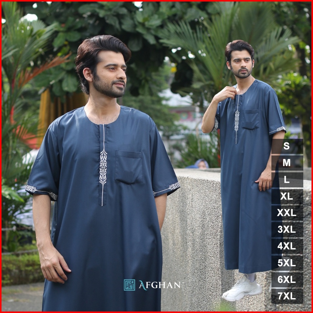 Afghan Jubah Althaff Model Kerah Oblong Tanpa Kerah Tipe Lengan Pendek Dengan Bordir Didepan Dada Untuk Dewasa Size Regu