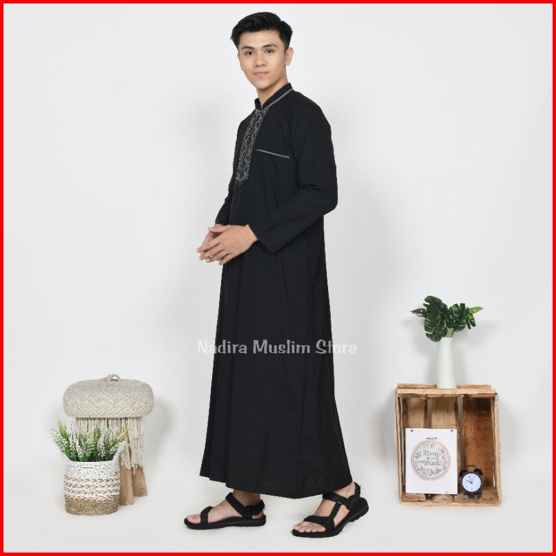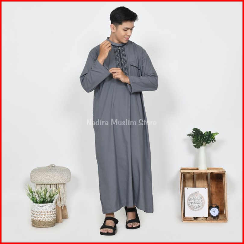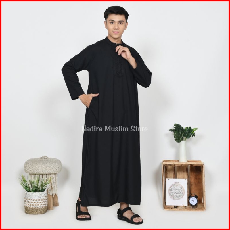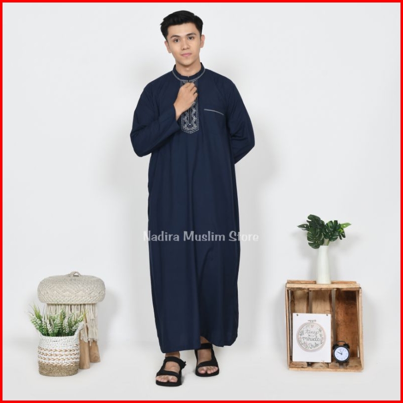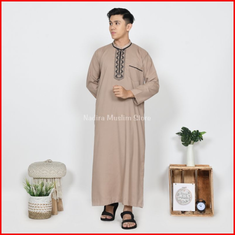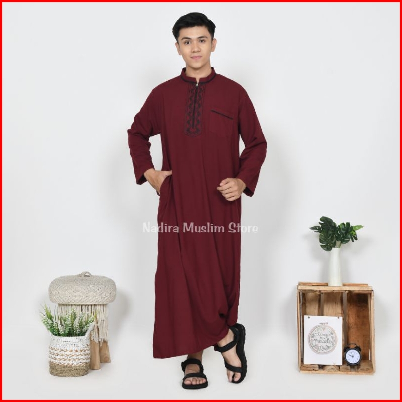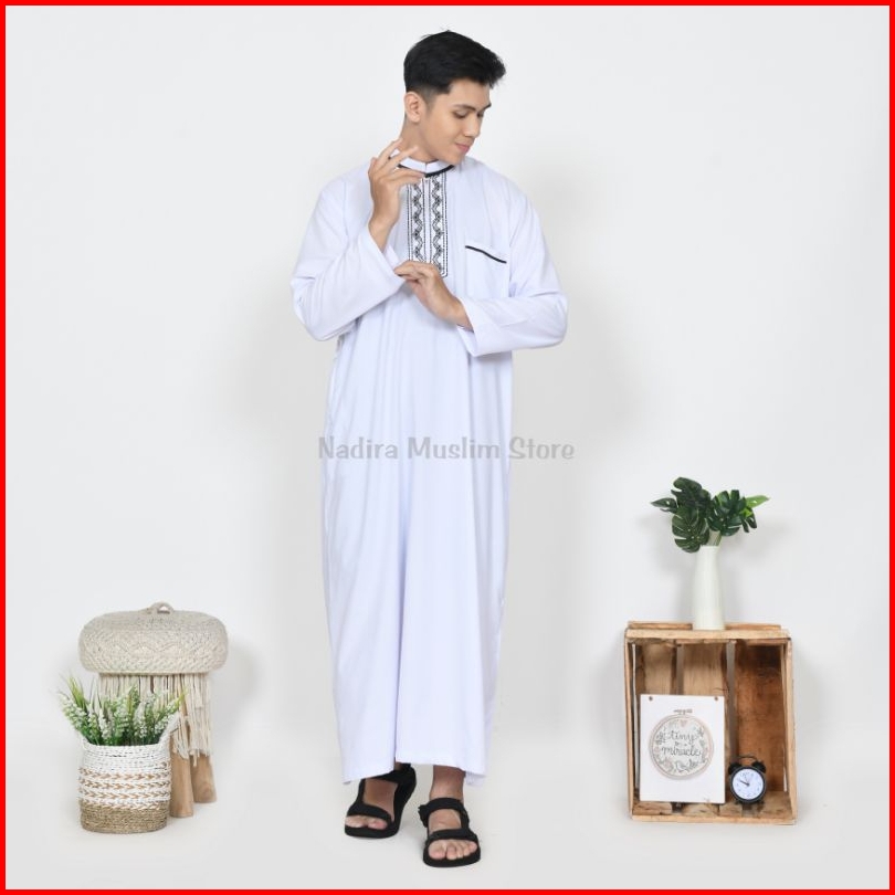 Jubah Laki - Laki Dewasa Bordir Simpel Elegant Gamis Pria Dewasa Lengan Panjang