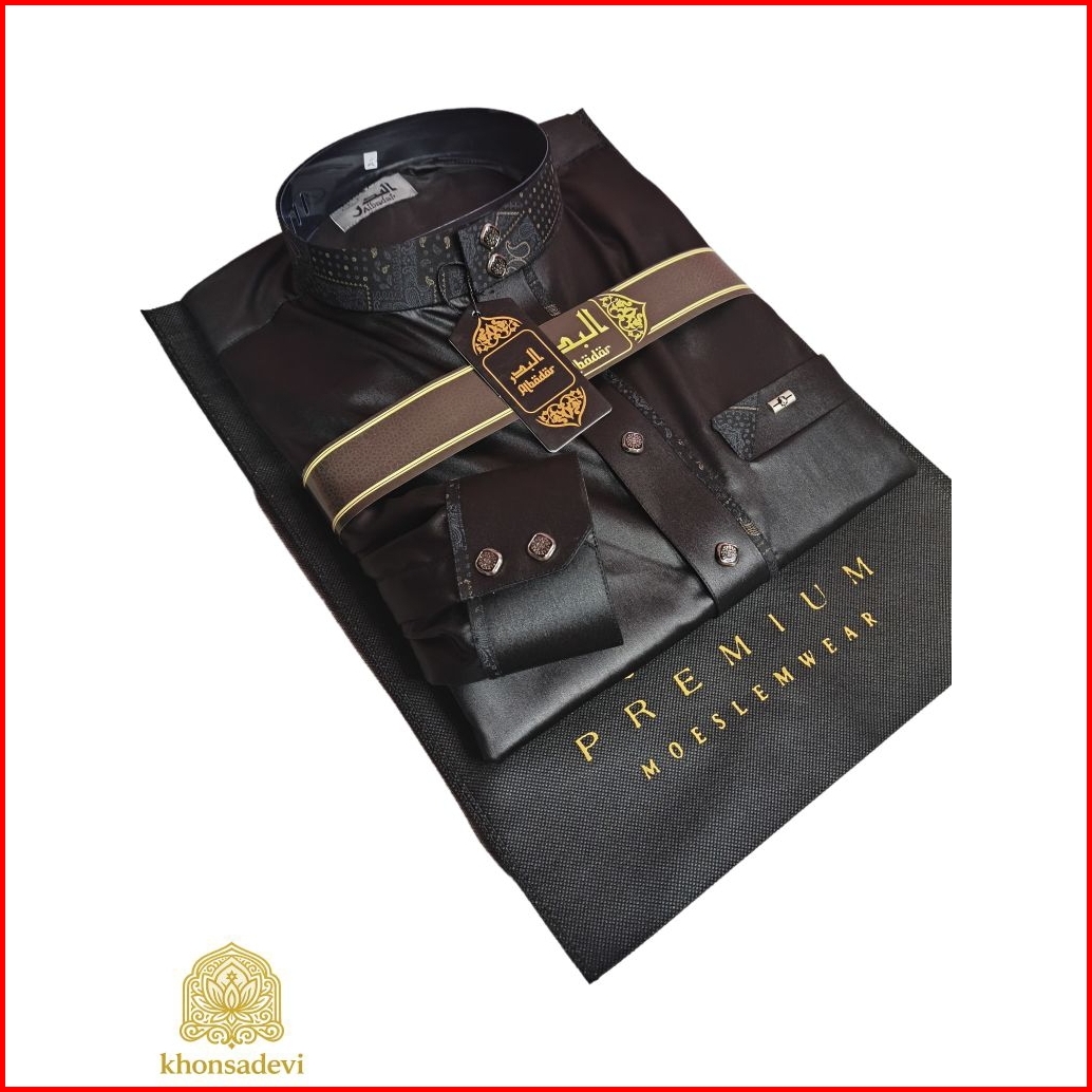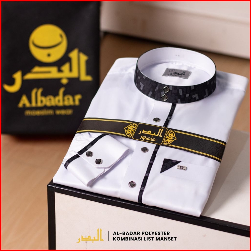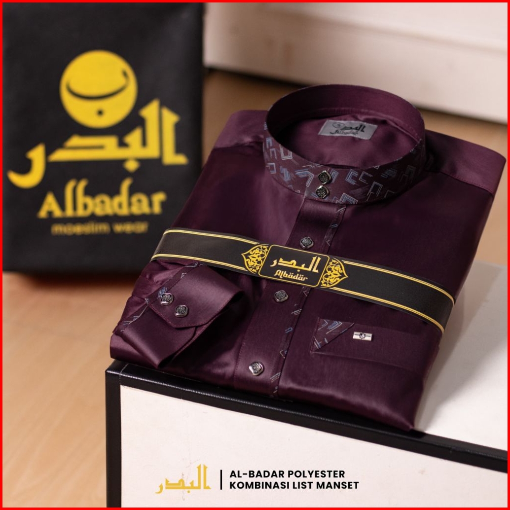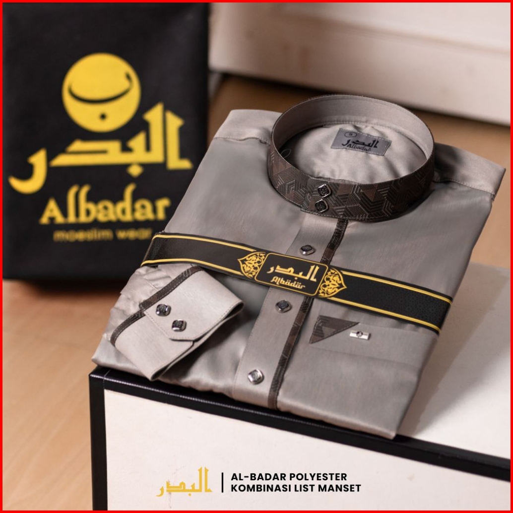 Jubah Al Badar Polyester Lengan Manset Kancing Premium Bahan Licin Gamis Pria Anti Uv