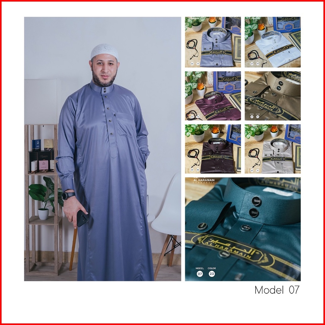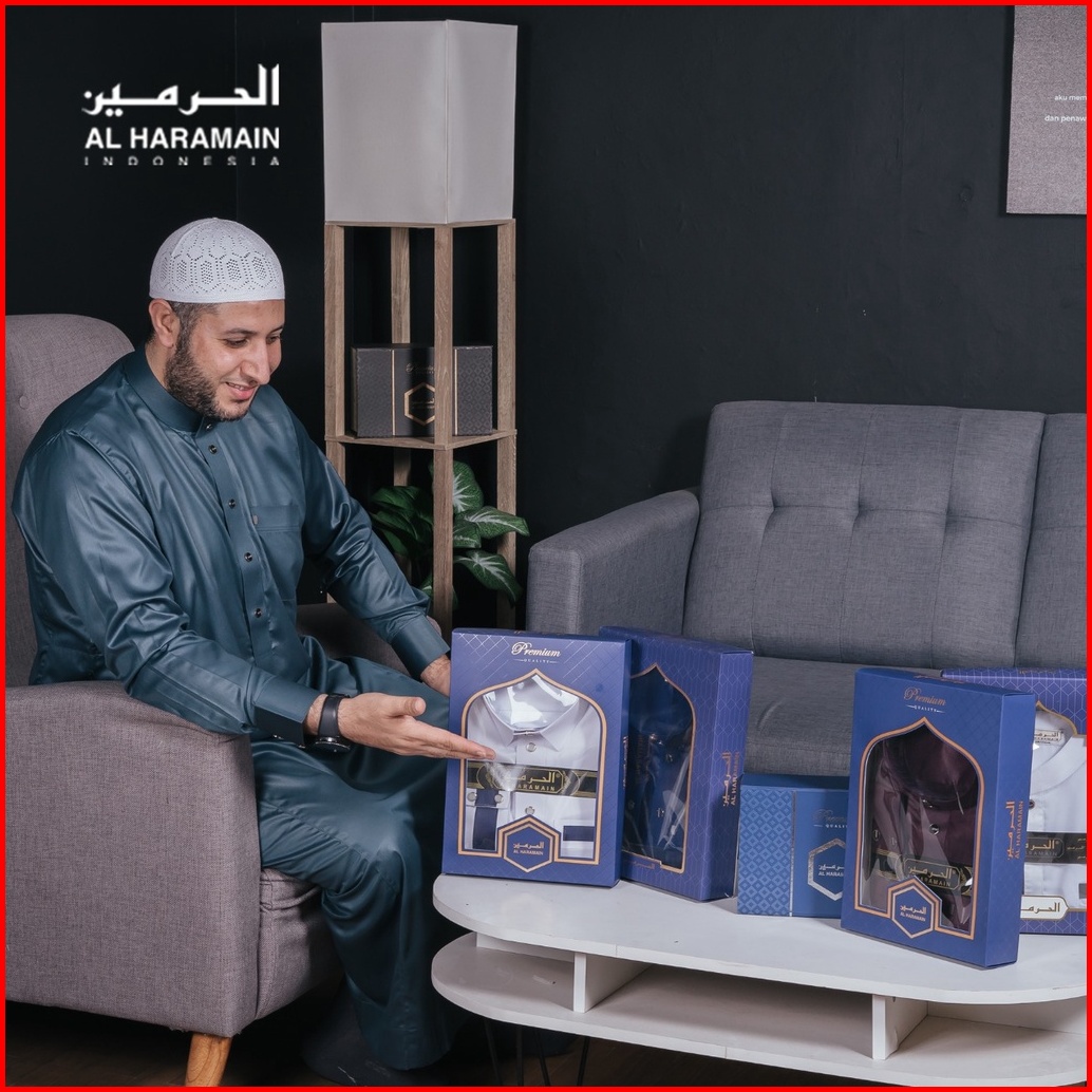 Al Haramain Jubah Gamis Pria Dewasa Premium Manset 07 Cream L Maroon Hijau Lumut