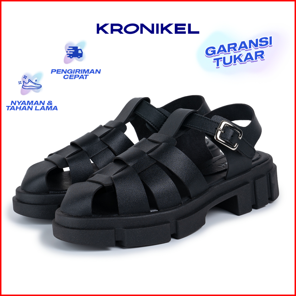 Kronikel Virgilia Sandal Klasik Wanita Kasual Sandal Hitam Black