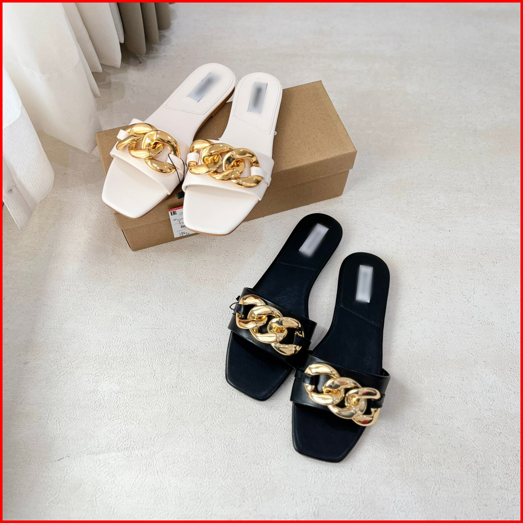 Sandal Wanita Kulit Sintetis Flat Hitam Putih