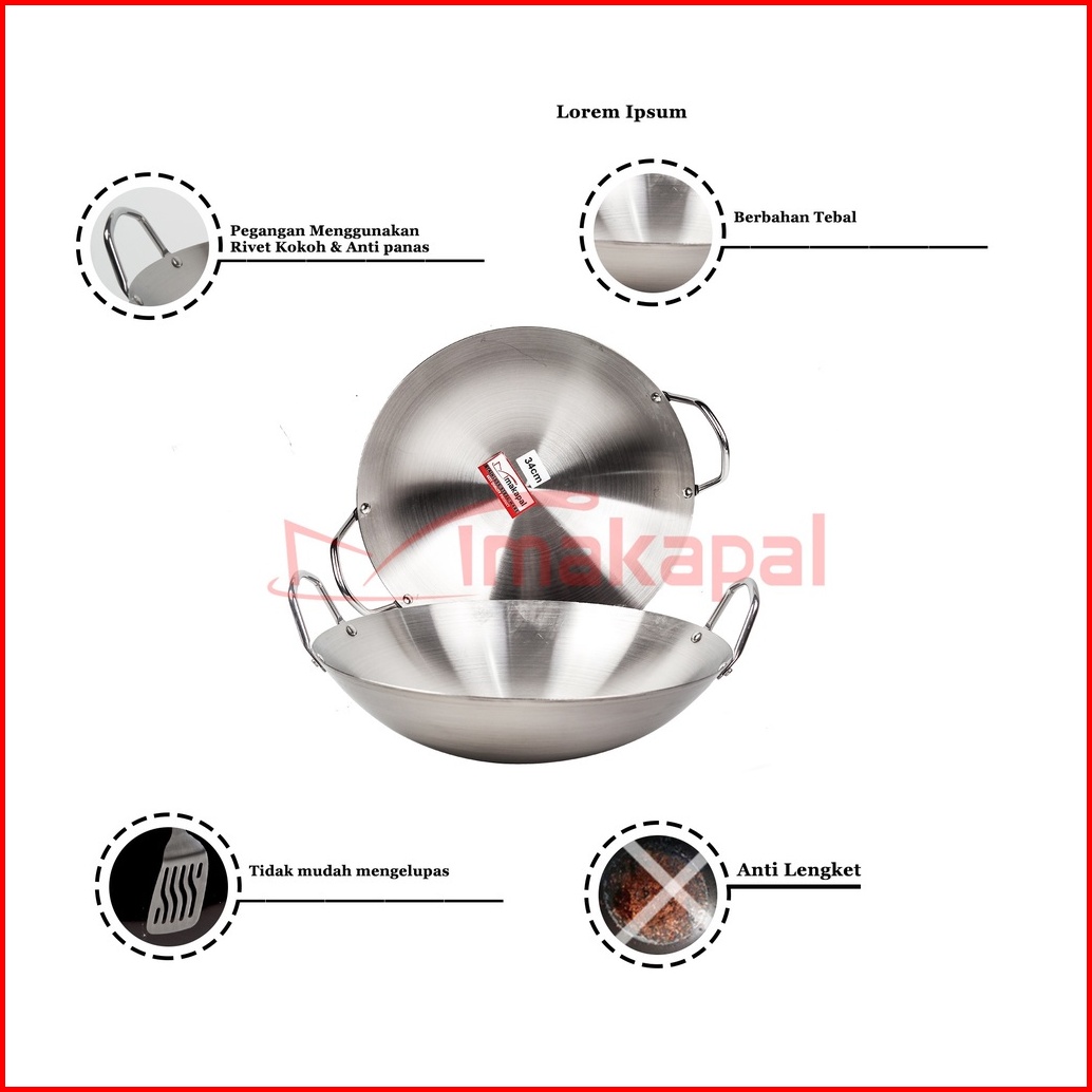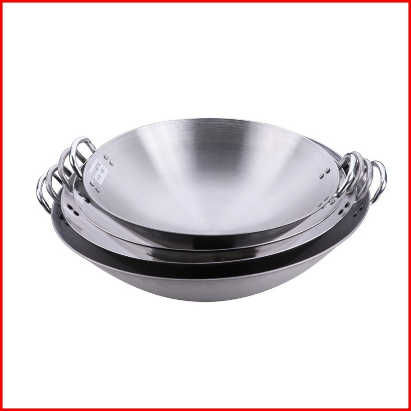 Wajan Premium Kuali Stainless Steel Sus 410 Wok Kuali Penggorengan Anti Lengket Masak Oseng