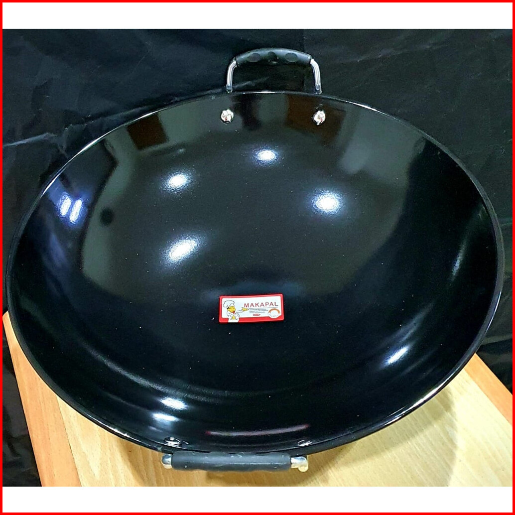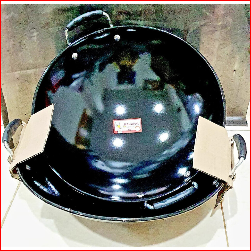 Kuali Enamel Hitam Anti Lengket Anti Gores Gg Plastik Wok Masak Wajan Tebal 31-46cm