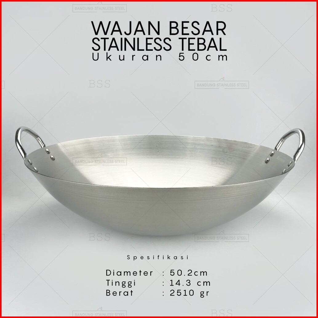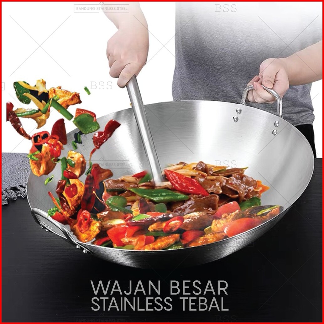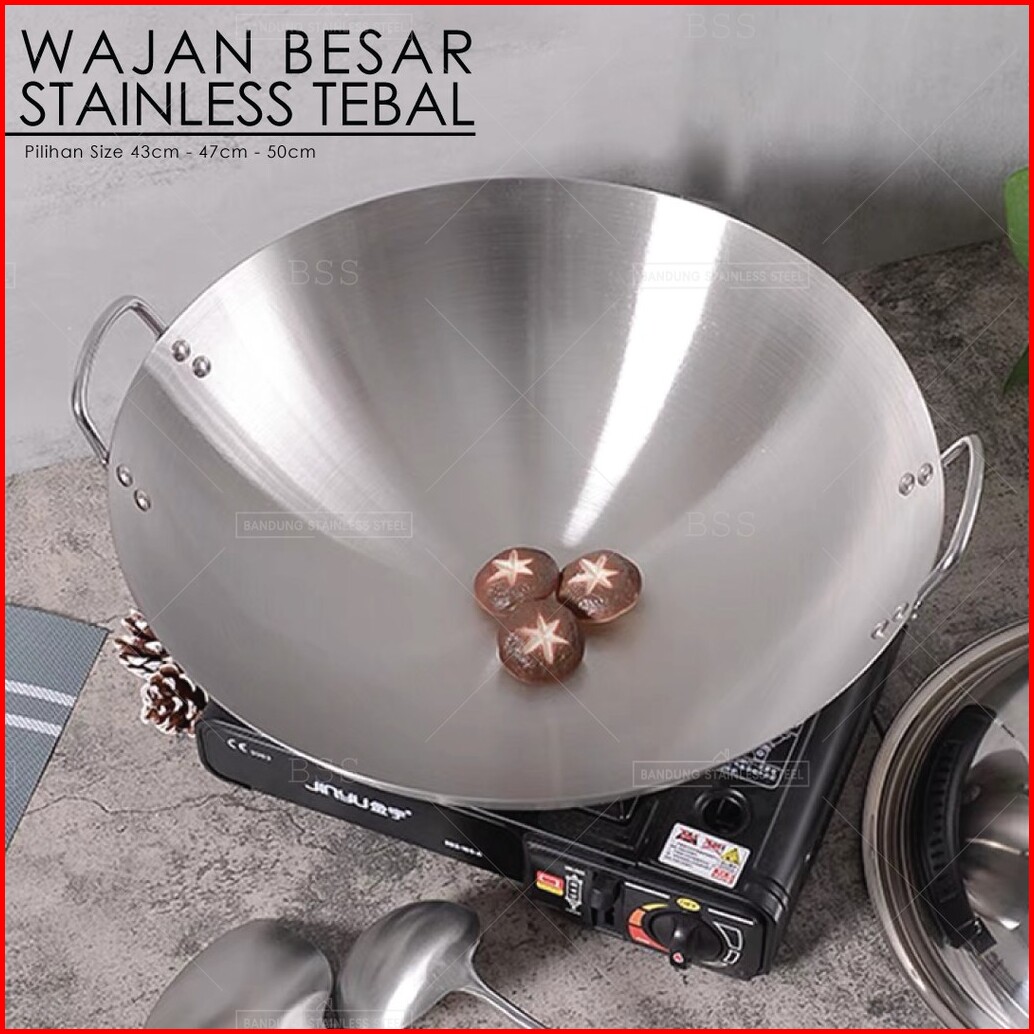 Wajan Besar 43cm 47cm 50cm Penggorengan Stainless Steel Tebal Wok Kuali Goreng