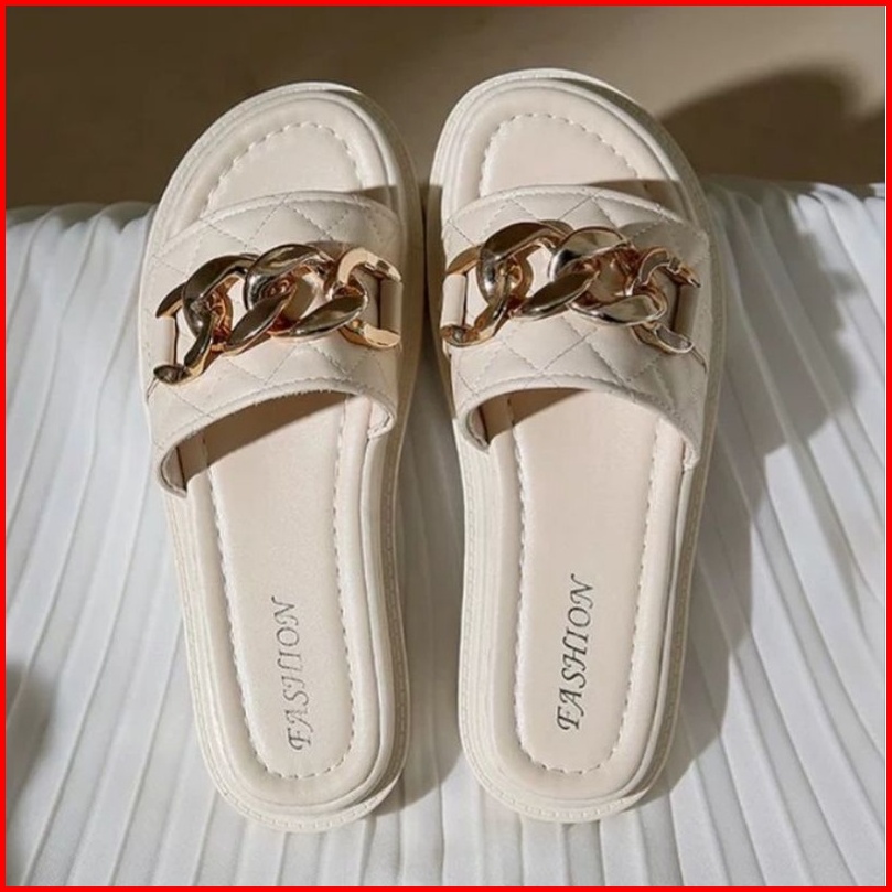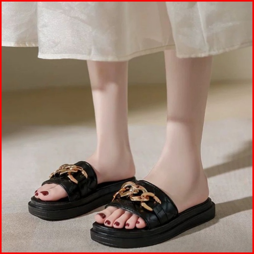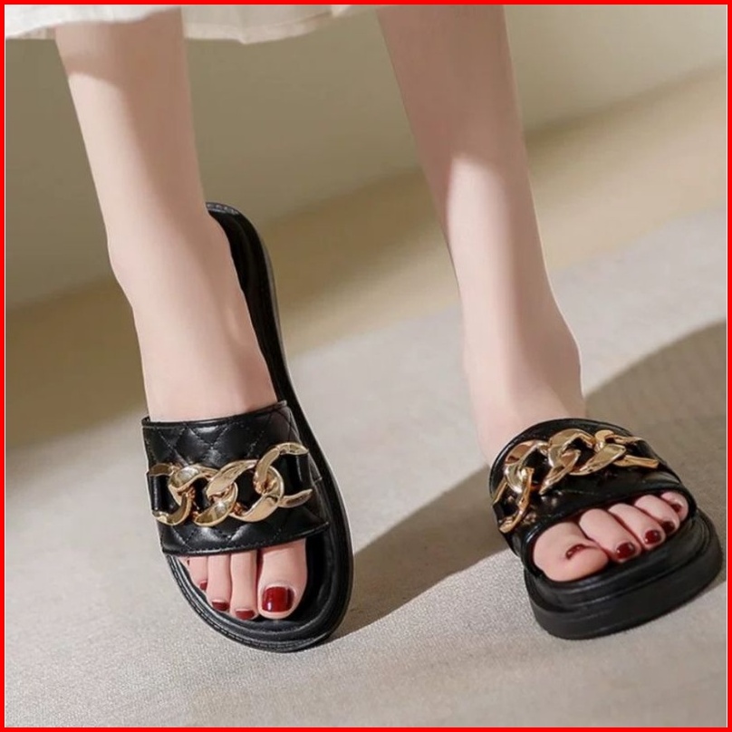 Sandal Fashion Wanita Import Quality 2029 Terbaru Korean Style Sandal Selop Wanita Slip On Chain Kekinian