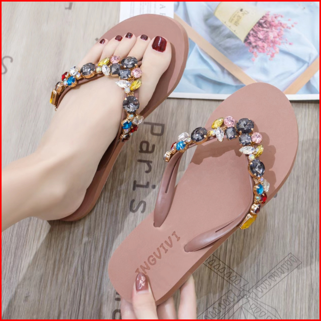 Ingvivi Wedges Jepit 719 Sandal Ingvv Swarovsky Wedge Permata Spon Flip