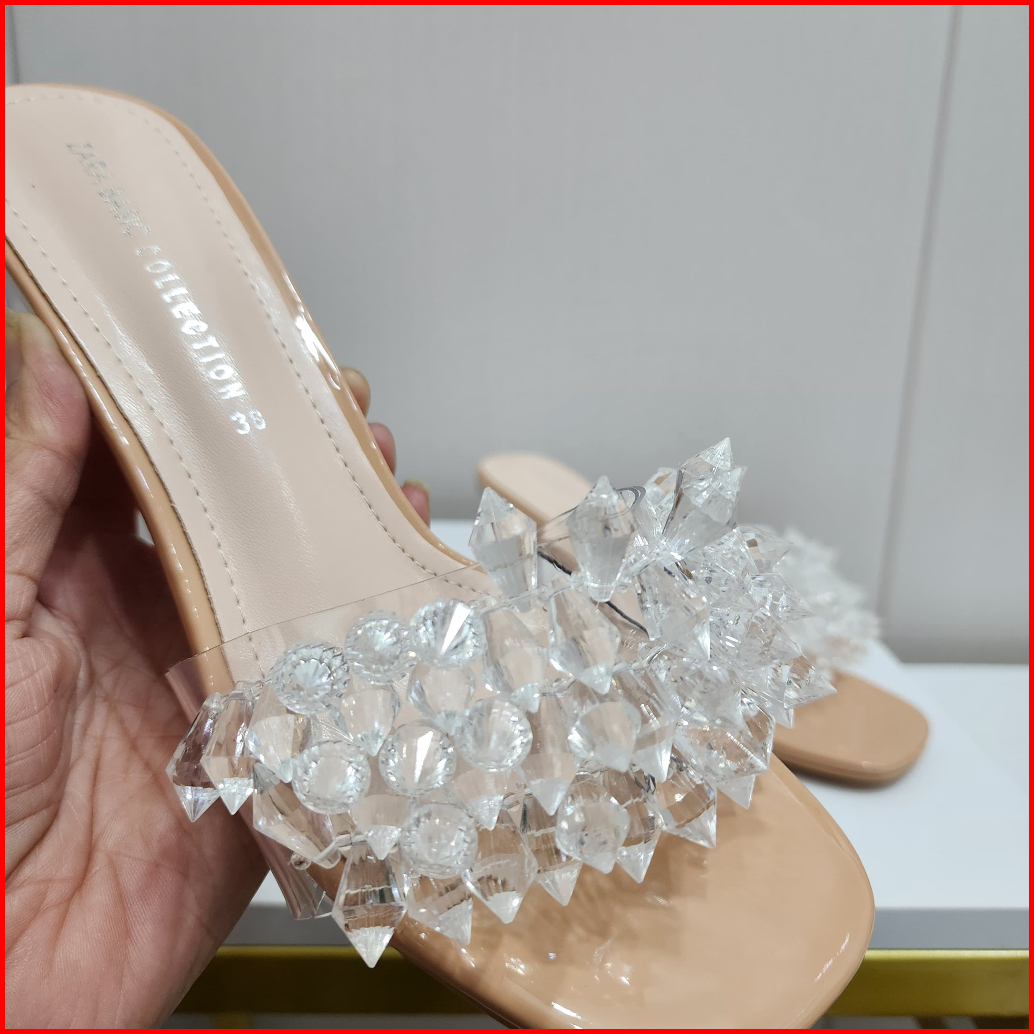 Sandal Heels Kaca Kristal Wanita Elegan 6 5cm Zr 879