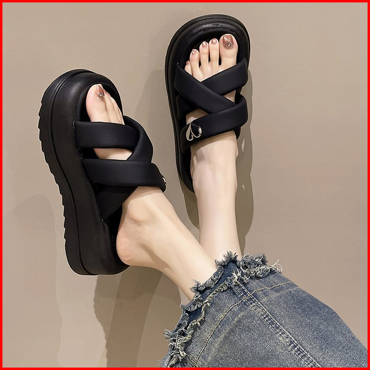 Import Design Sepatu Sandal Wanita Import Sandal Kasual Wanita Hitam Casual Sandal Shoes Sandal Foam Karet Injeksi Premi