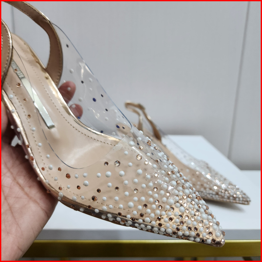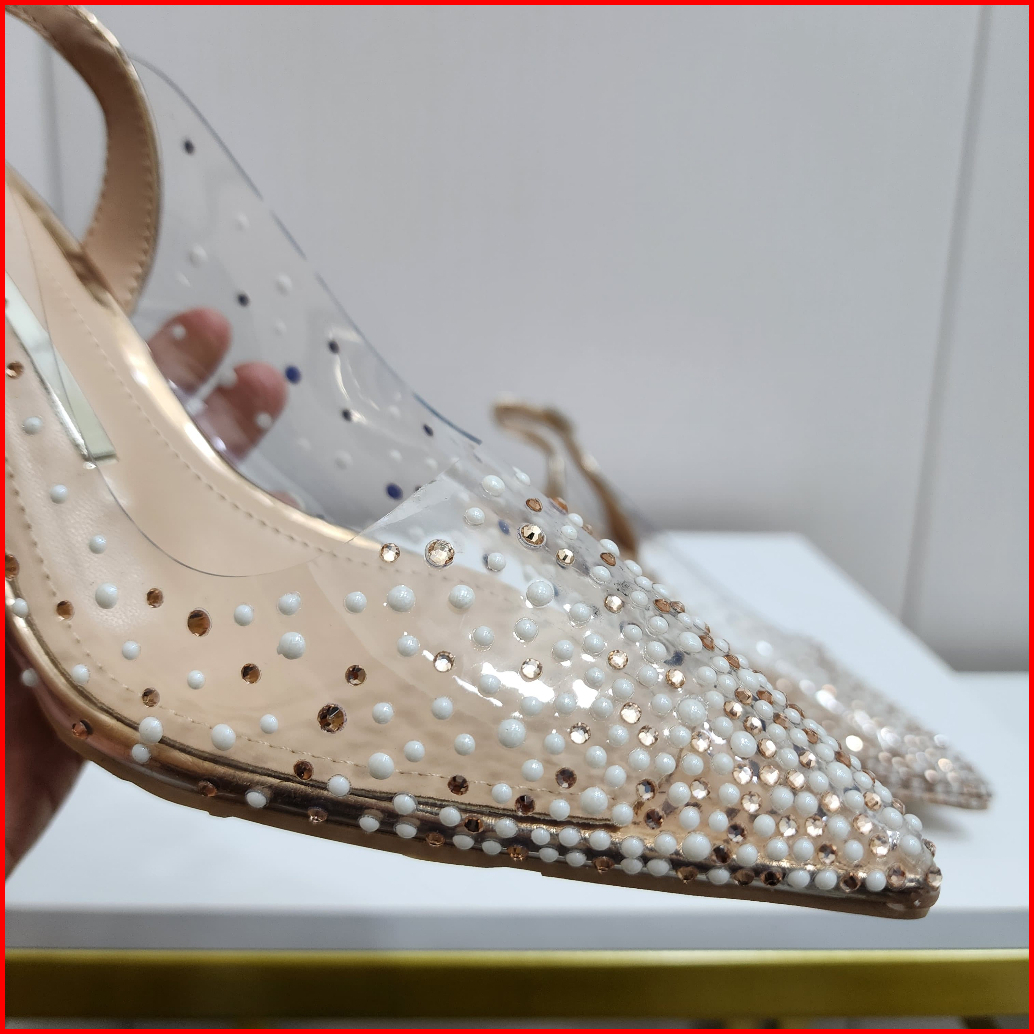 Stc 454 Pointed Heels Slingback Transparan Mutiara Elegan 7 5cm