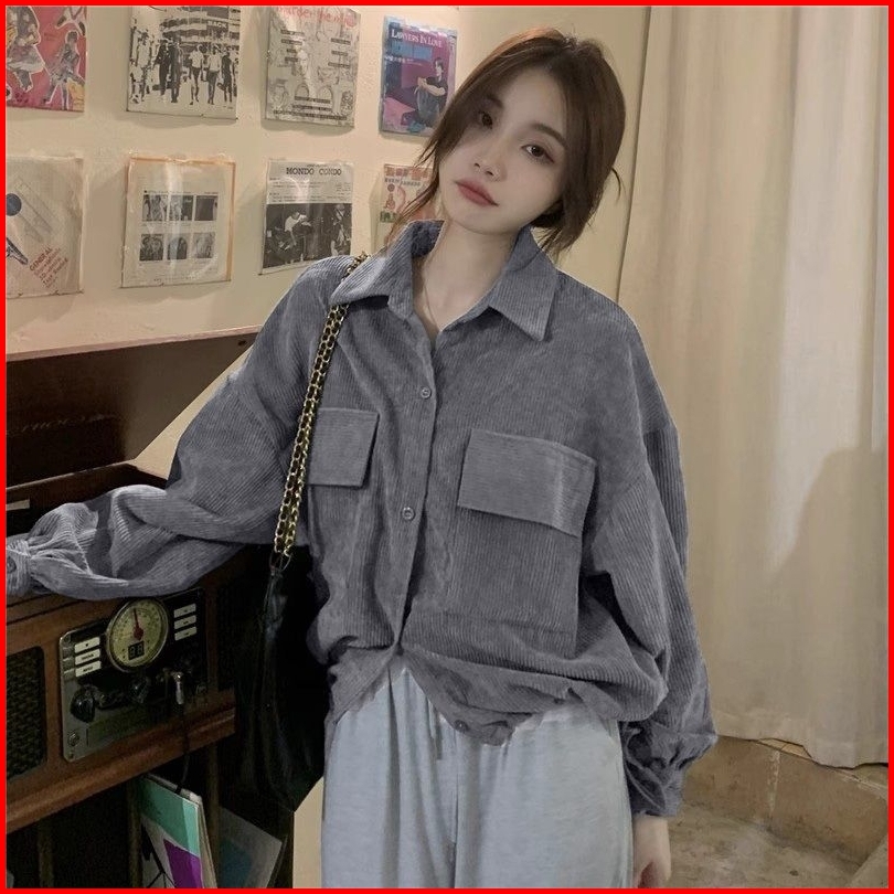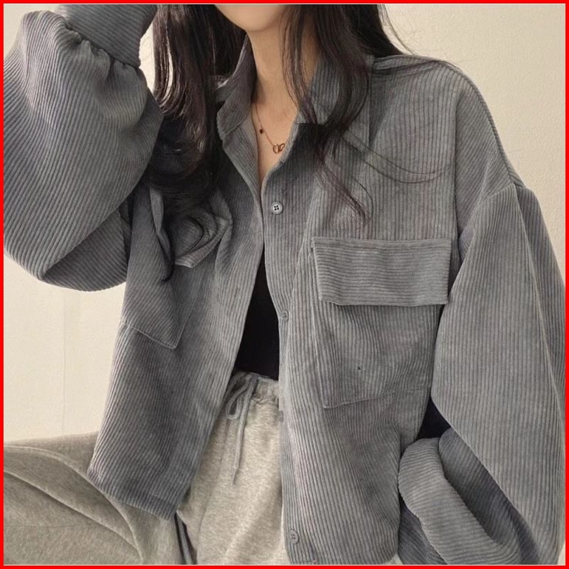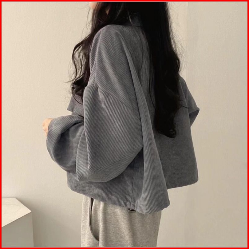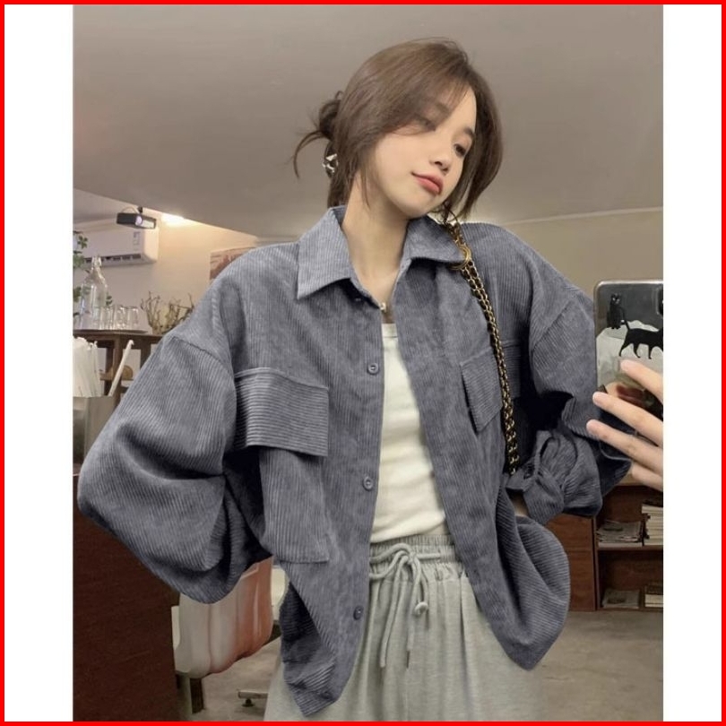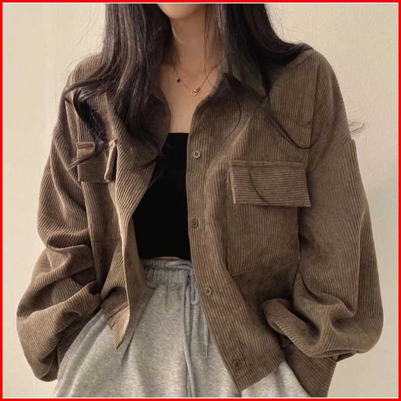 Jiu Jaket Wanita Vintage Corduroy Casual Trendy Korean Style